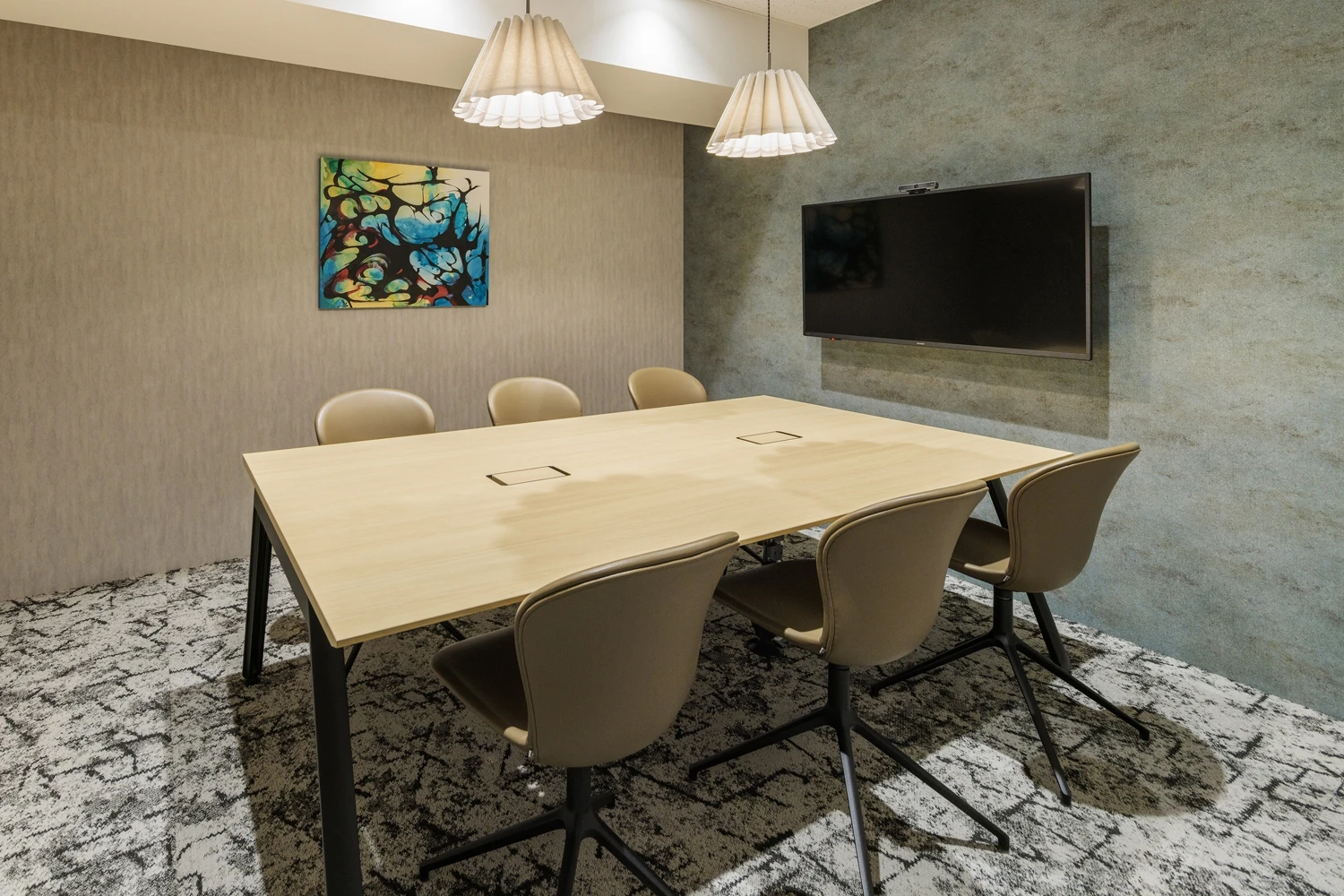 「人」と「人」とのつながりの力は単なるビジネスの成果を超えて、クライアントの先にいる大切なお客様やステークホルダー全員に喜びをもたらすものだと考えているBamos様の考え方から派生し、『人と空間がつながるオフィス』というテーマをもとに設計。