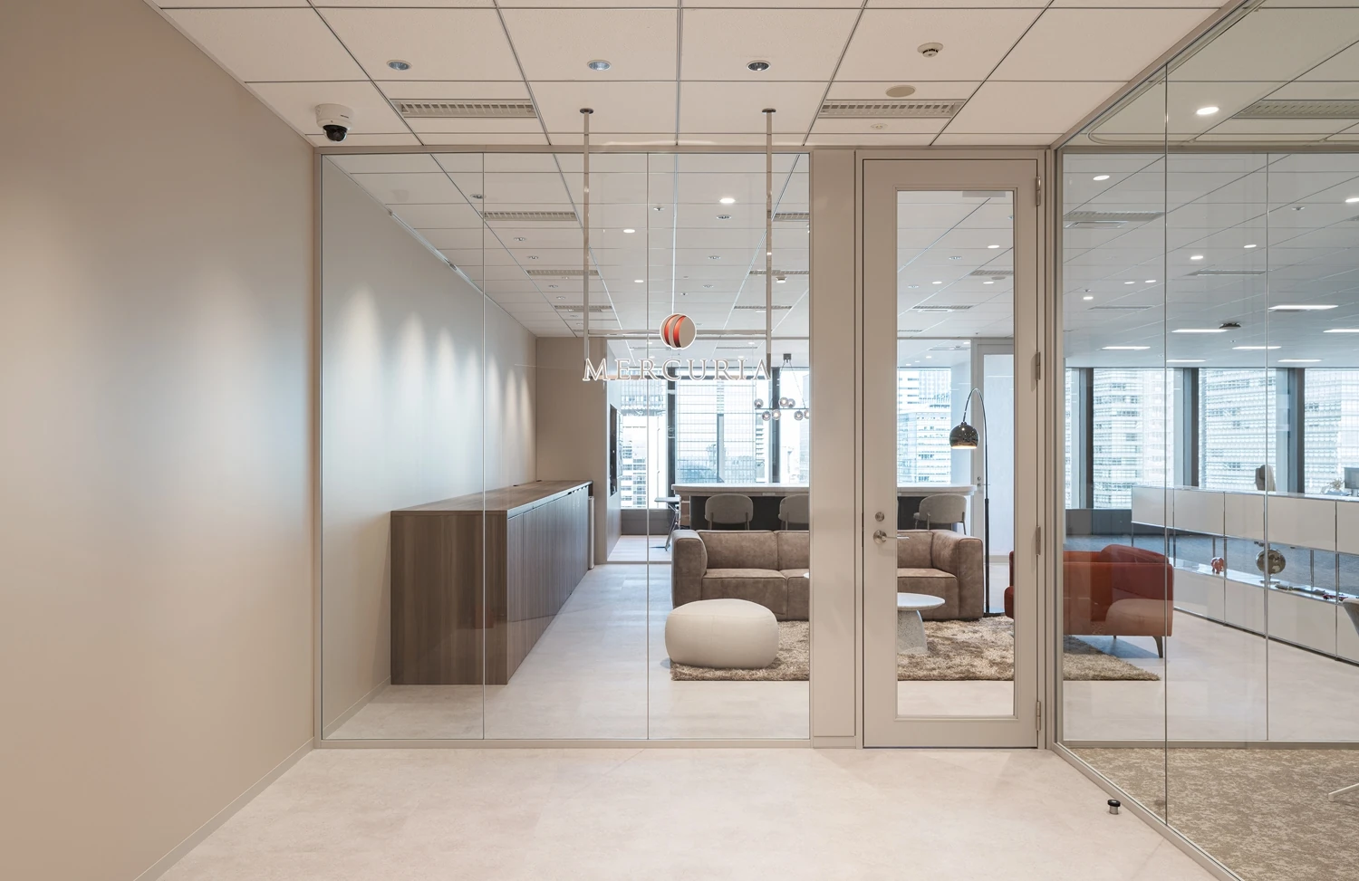 日本での営業を展開するにあたり、新会社の設立をすることになったマーキュリア・エナジー・トレーディング・ビーヴィ様。企業の成長に伴う人員の増加がきっかけとなりスタートしたプロジェクトです。既に50か国以上で事業を展開する中で、新たなサービスの展開や日本での事業の拡大を目指し、マーキュリア様らしさを重視したオフィスを構築しました。
