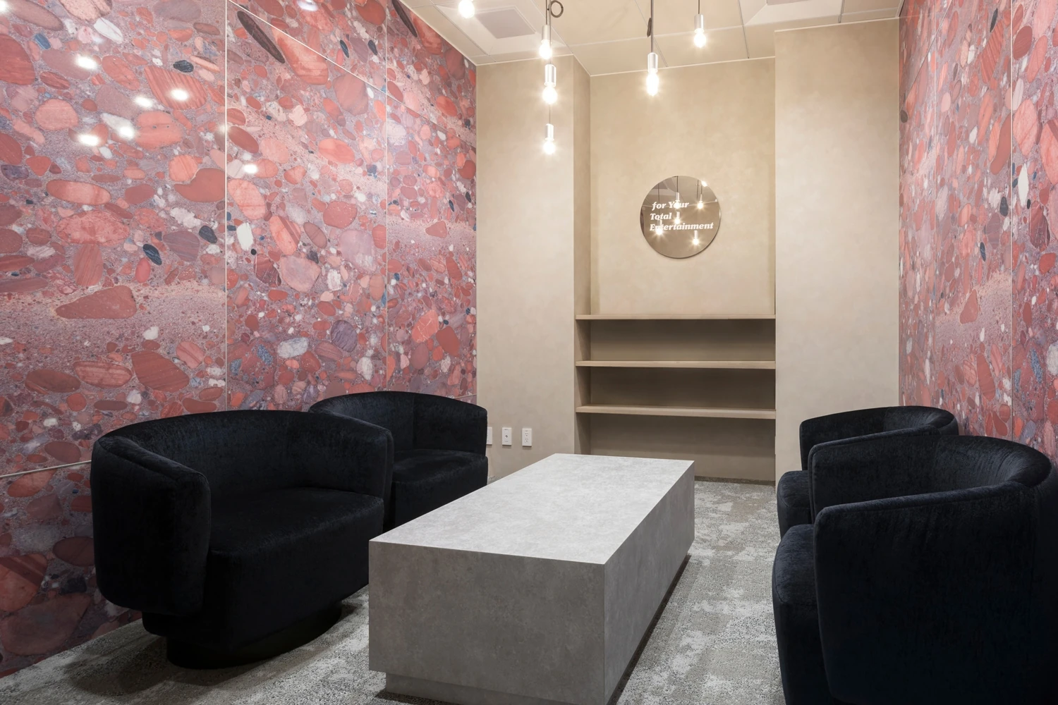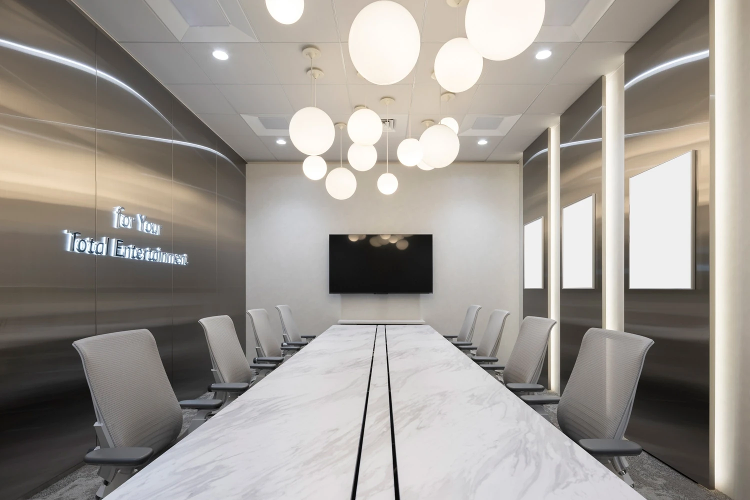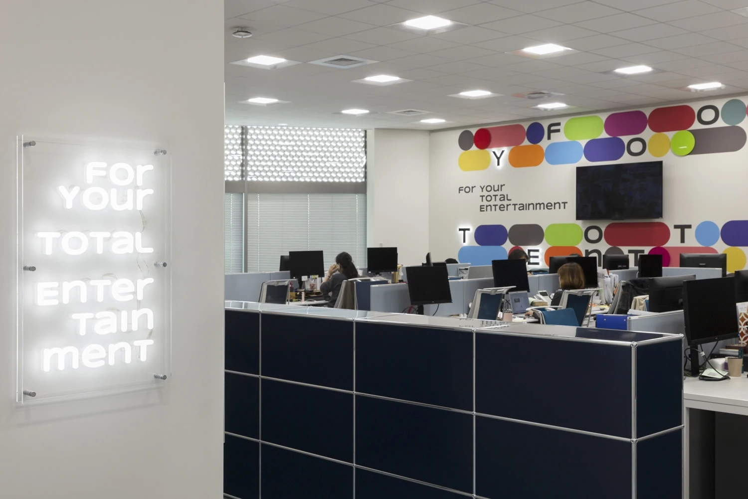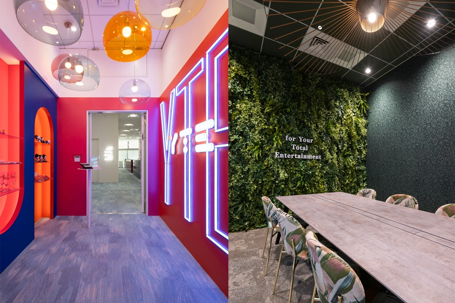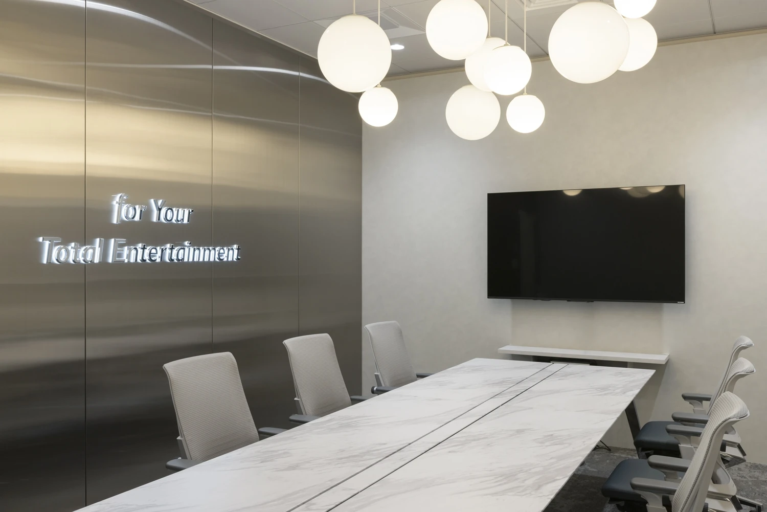 社名変更に伴うオフィス空間の一新を目的とした改装プロジェクト。会議室・リフレッシュエリア・執務室それぞれ社名を体現した空間にすることで、会社に訪れた方々にエピソードを語ることができるオフィスにしたいという想いがありました。遊びある仕掛けを各所に取り入れることでエンタメ企業らしさを表現し、読売テレビ以外の幅広い仕事を手掛ける新たなイメージを持ってもらうこと。また、採用においても効果的なオフィスにしたいなど、対外的な効果を期待するさまざまな想いのもと本プロジェクトはスタートしました。 -