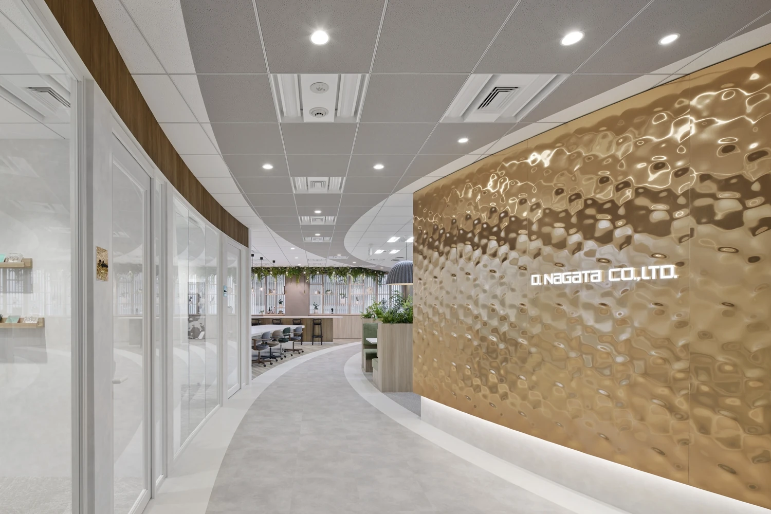 入居中のビルが建て壊しになることがきっかけで始まった移転プロジェクト。さまざまな事業を展開している長田通商様ですが、建築用・照明用のアルミ素材の分野でさらなるシェア拡大を狙うために、ショールーム機能を持ったオフィスの構築を目指しました。 -