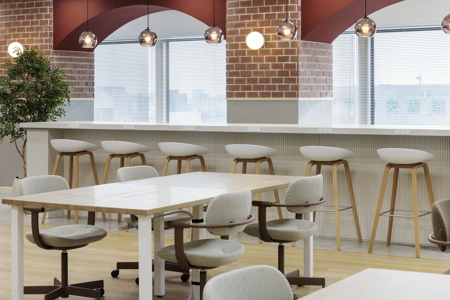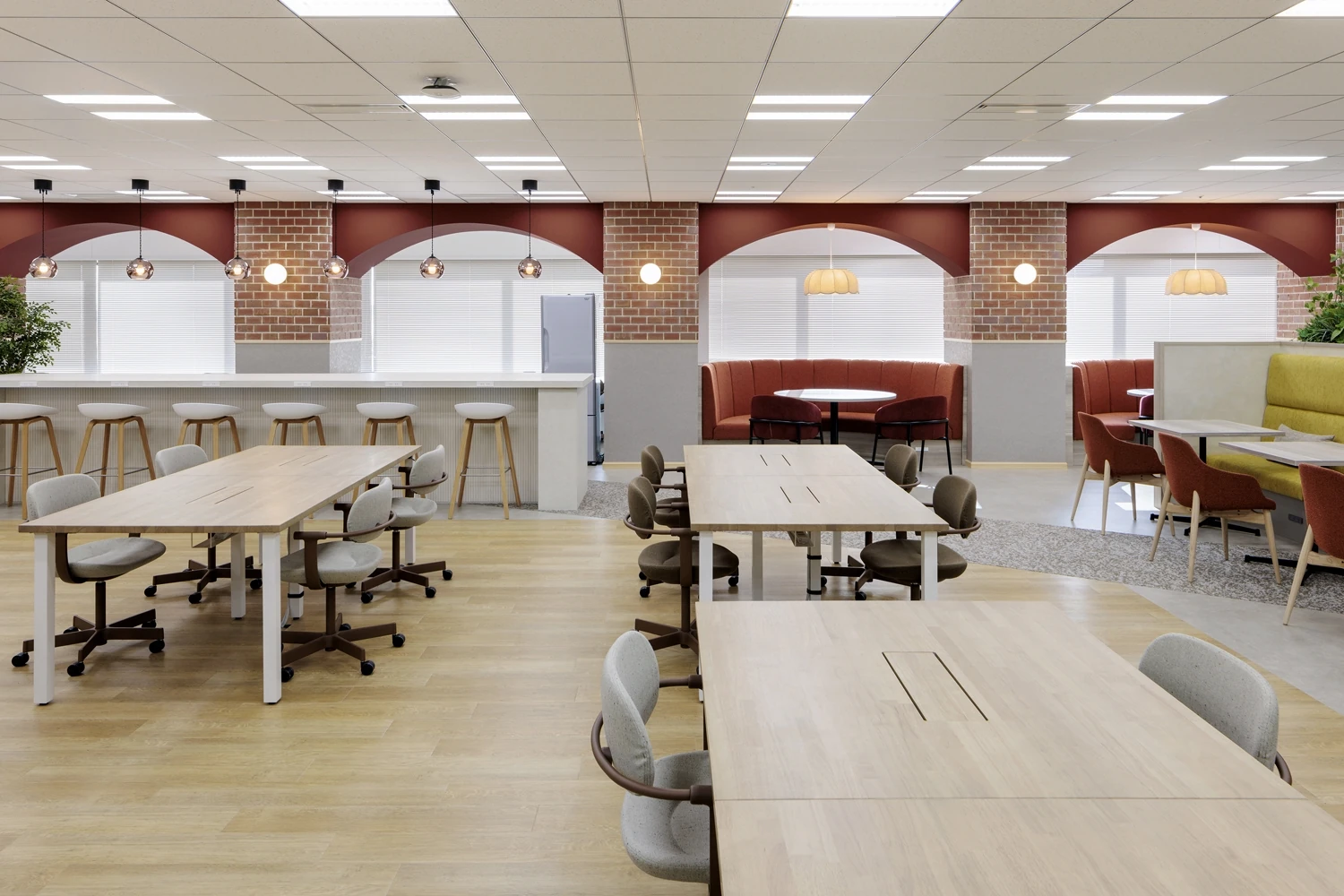 元々はビルの空調工事にともない、館内移転が生じたことがきっかけでスタートしたプロジェクト。コロナ禍が明けたことでリモートワークから出社が基本のスタイルに変わり「自主的に出社したくなるオフィス」をキーワードに移転プロジェクトが発足しました。オフィスに同じ志をもつ仲間がいるからこそ、オンラインでは感じることのできないリアルなコミュニケーションを促し、一体感を醸成するような空間を目指しました。