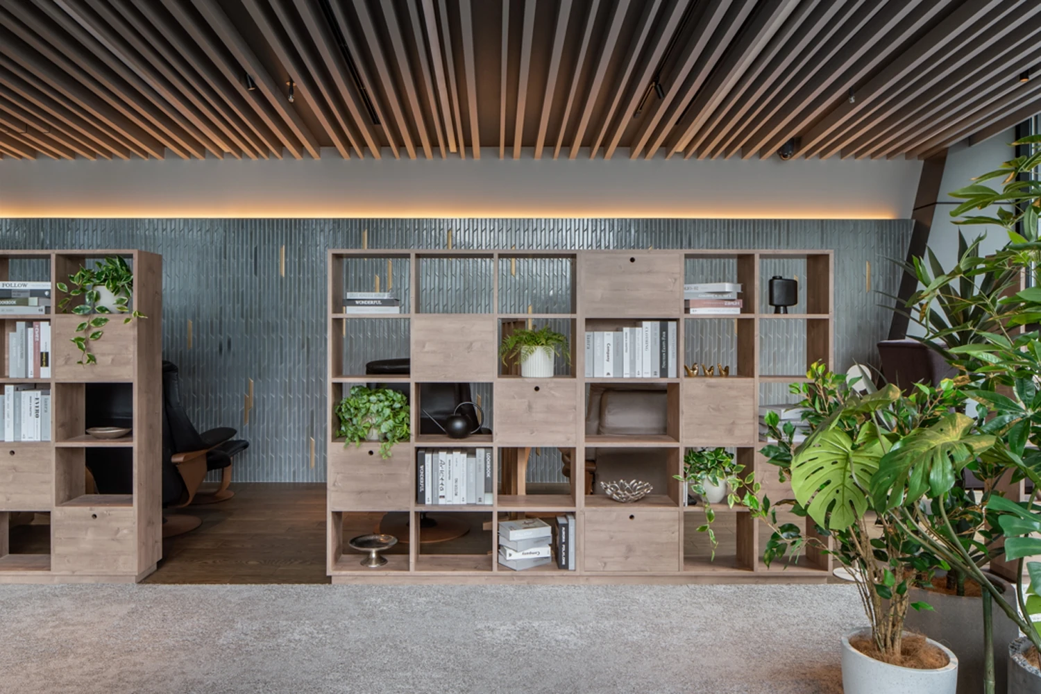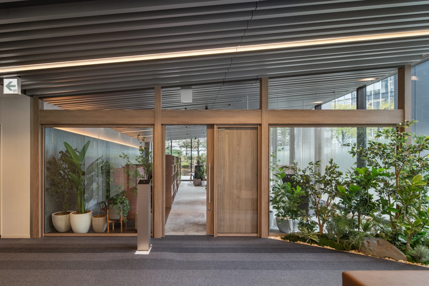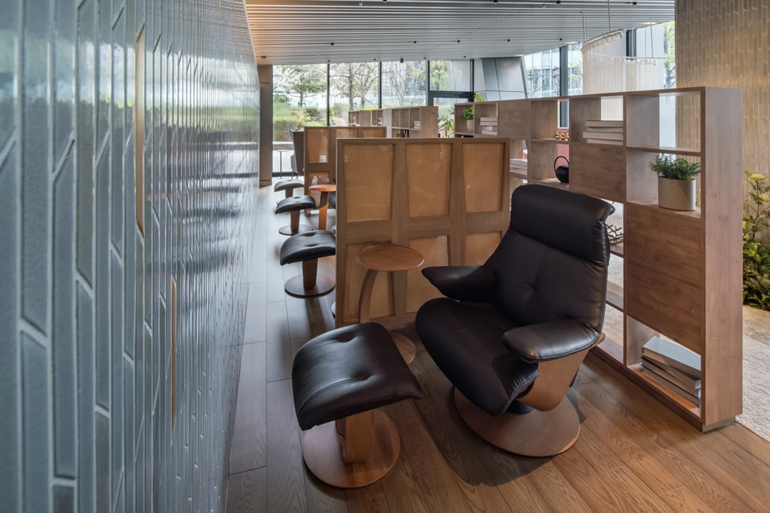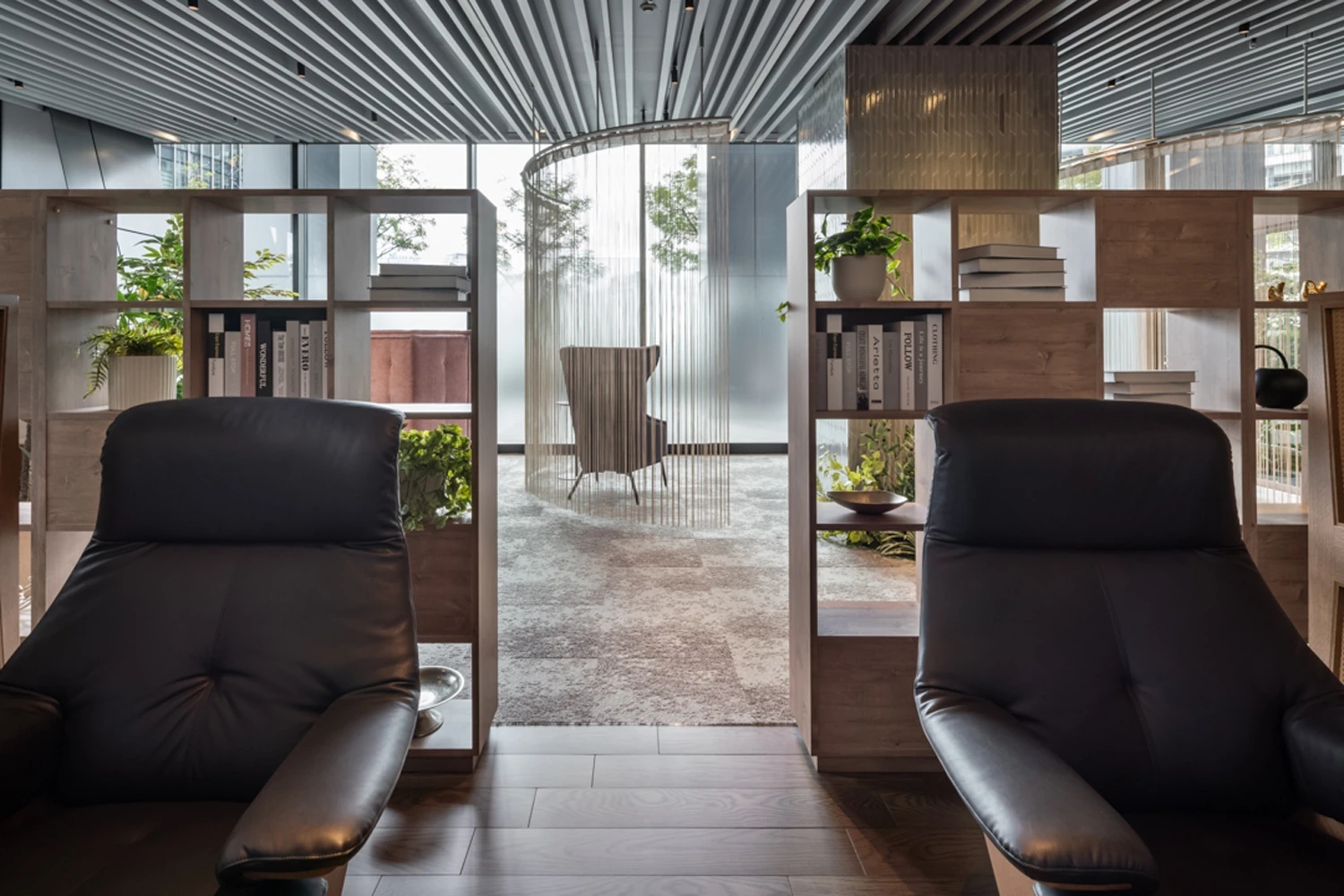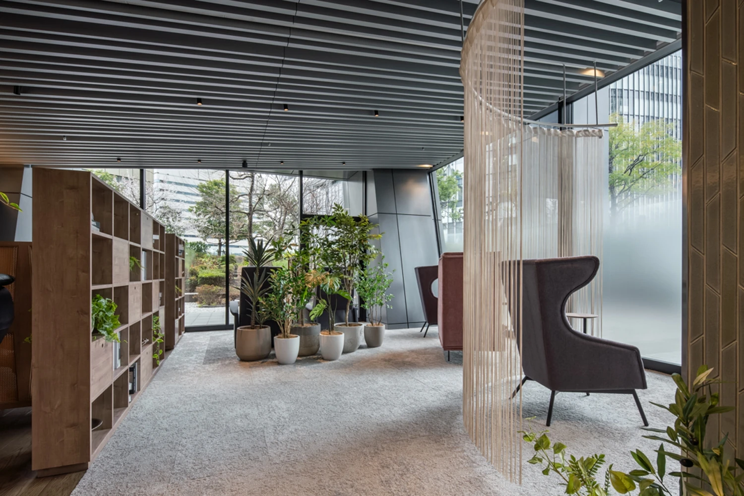 デザインコンセプトは”さなぎ”を意味する『Pupa』。さなぎとは幼虫から成虫になる間の期間のこと。さなぎになってからの数週間から数か月、直線的な成長を一旦止めるその期間は、一見何もしていないように見えますが、囲いの中で自分を分解し、きれいな蝶になるためにゆっくりと自分の体を作り替えていきます。そんなさなぎの役割を今回の改装プロジェクトのテーマにも落とし込み、戦略的に活動を止める『より大きな成果を出すための積極的休養を取る場所』と定義しました。仕事の合間の少しの時間にカラダとココロの活動を止めて、自分を整えることができるように上質な空間にこだわり、座った時に包み込まれるような心地良さを感じるチェアやその張地、温かみを感じる照明、リラックス効果のある音楽など、五感からも安らぎを感じられるよう設計しています。また全体の照明を極力抑えることで、まるで木陰で休むようにリラックスできる環境を目指しました。また、人目などの眠りの妨げにならないように、植栽やカーテンの設置や、チェアの向きにもこだわり、利用者にとって居心地のよい空間を重視してプランニング。名古屋を代表するシンボリックビルのこれまでのイメージに加え、信頼感と落ち着きを感じさせるデザインにしています。