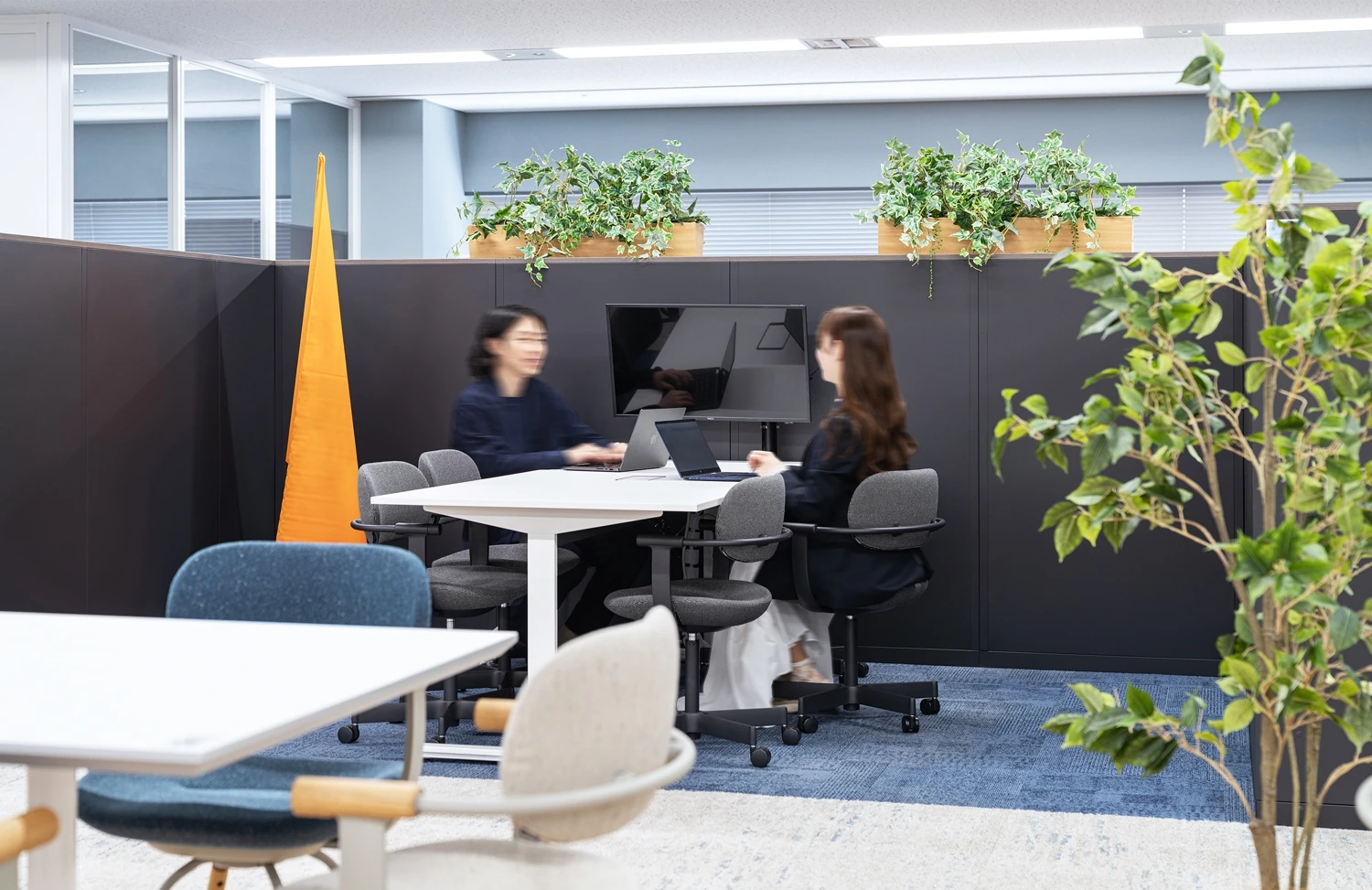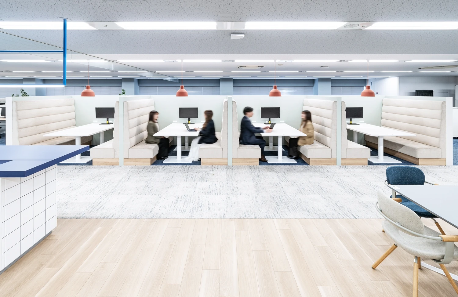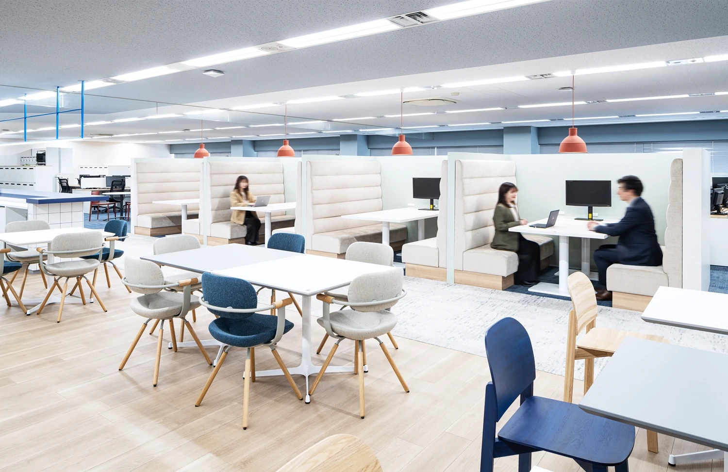 コロナ禍以降、在宅勤務と出社のハイブリッドワークを実施してきた鈴与シンワート様。フリーアドレスを導入しているものの、ベースデスクが並ぶ執務室の中では固定席化が定着しており、交流の機会が減少しているという課題がありました。そんな中、自発的に働く場・働き方を選択できるようになってほしいという経営層の思いからプロジェクトがスタート。改装前にはワークデザインサーベイを実施し、現状の課題と将来像をまとめ、オフィスに必要な要素をまとめていきました。 -