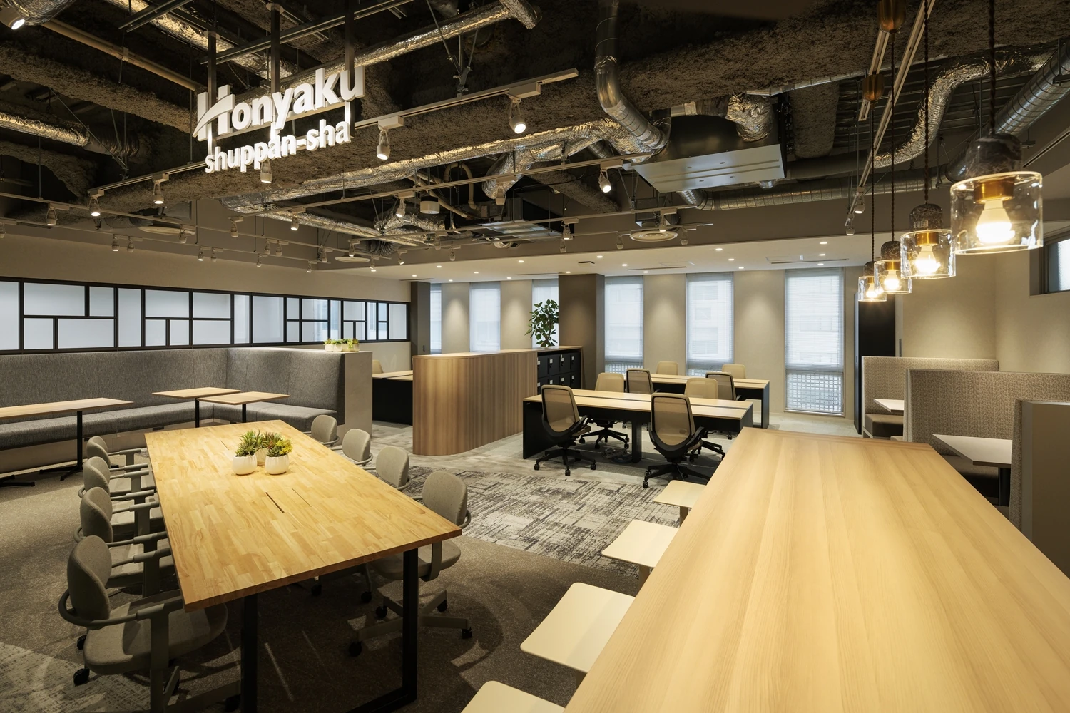 58年という長い間、入居していた自社ビルを売却すると同時に、本社移転を進めた今回のプロジェクト。組織の代表が代替わりをしたタイミングで、ホームページや働き方などを一新するタイミングでもあったこともあり、新オフィスへの移転ではホンヤク出版社様の新たなスタートを後押しする場所になれるよう、自ら出社したくなるような活気あふれるオフィスにすること、また求職者にとっても働きたいと感じてもらえるオフィスを目指しました。 -