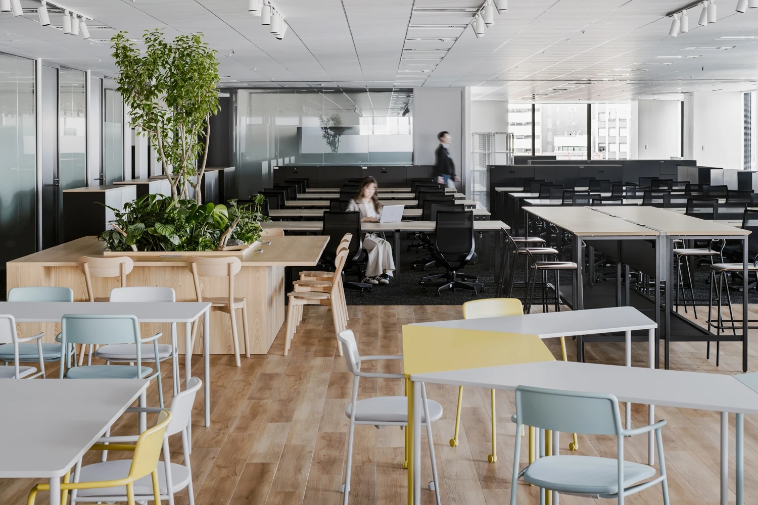 在籍する社員のモチベーションアップかつ、グループアドレス、フリーアドレスなど新しいワーキングスタイルへ挑戦していくにあたっての運用変化に対応するためのワークスペースの構築を目指しました。 -