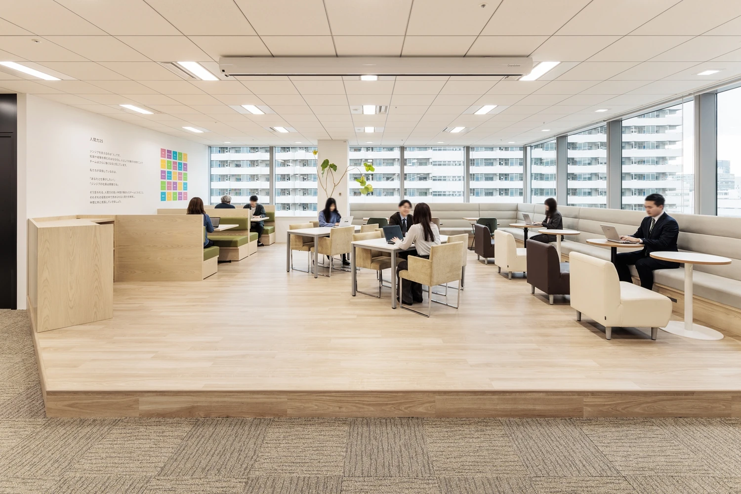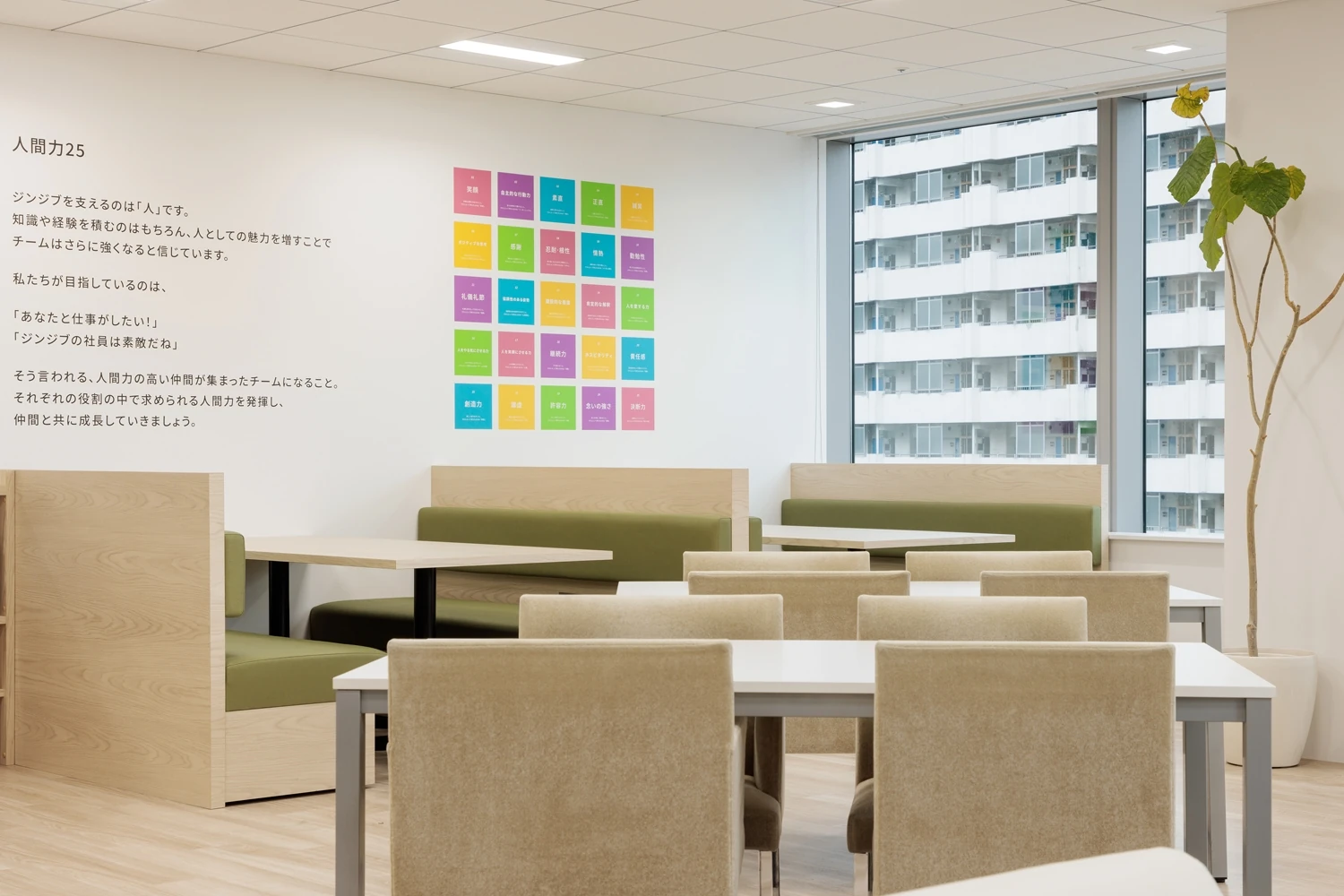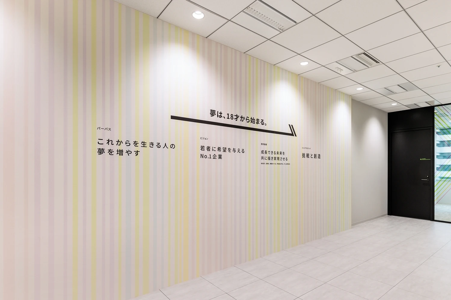 大阪オフィスの移転プロジェクトの際のコンセプトであり、学生やジンジブ様の若手社員にとっての指標になってほしいという意味が込められている『ミチシルベ』。そんなコンセプトを守りながら、とくに若いメンバーが集う東京オフィスならではの要素を取り入れていくため『ミチシルベのその先へ』というコンセプトをもとにオフィス空間を構築しました。
