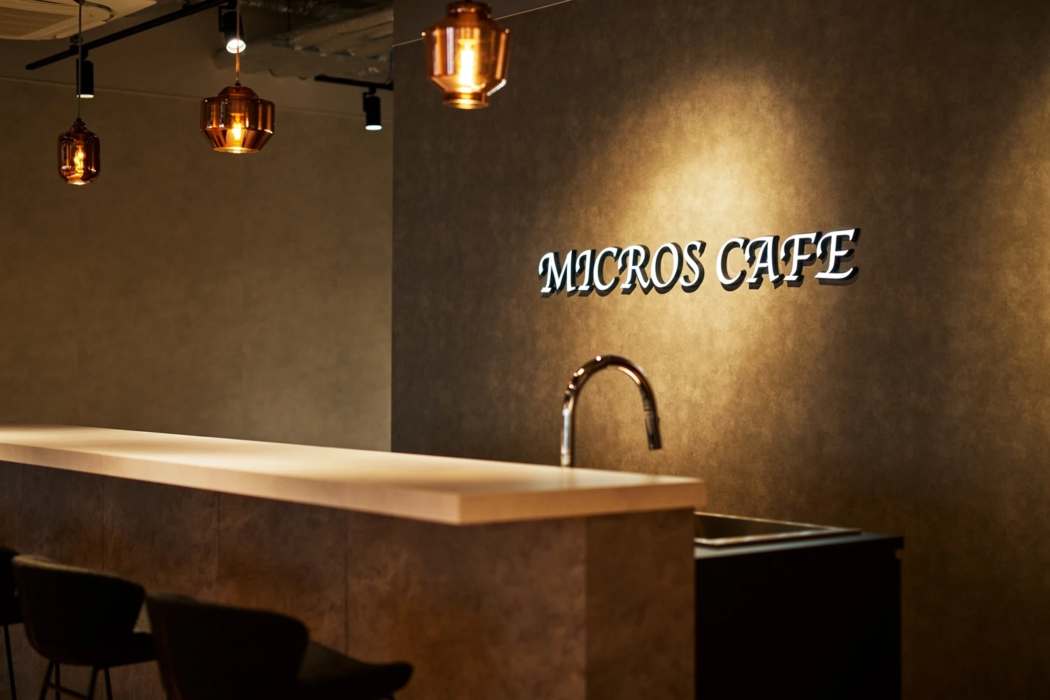 コンセプトは『New normal』。既存の枠にとどまらずオフィスデザインを多面的にとらえることで、見る人を惹きつけるという意味が込められています。リフレッシュスペースを中心に据えた回遊性のある動線計画により、自然と社内のコミュニケーションが生まれるレイアウトを実現しました。もともとのビルのスケルトン天井を活かし、ワークスペースとリフレッシュスペースをつなげることで、奥行きや一体感が感じられる空間構成となっています。また、モルタルや木目といった無骨なテクスチャーの中に、絶妙なバランスで差し色やグラフィックを取り入れることで、キャッチーでユニークな唯一無二のオフィスに仕上げました。中央の柱には北海道産ナラの無垢材を使用。素材の表情を生かしながら環境配慮(SDGs)にも貢献しています。さらに、ミクロスソフトウエア様の事業内容である「提案力」「技術力」「解決力」という提案型のトータルソリューションの要素を、既存の枠にとどまらない「多層的なデザイン」としてサイン計画にも反映。ワークエリアの壁面は事業内容をビジュアル的に表現し、会議室はルーム名である各偉人にちなんだアートを各壁面にデザインするなど、個性豊かでインスピレーションが沸く空間をつくりだしています。