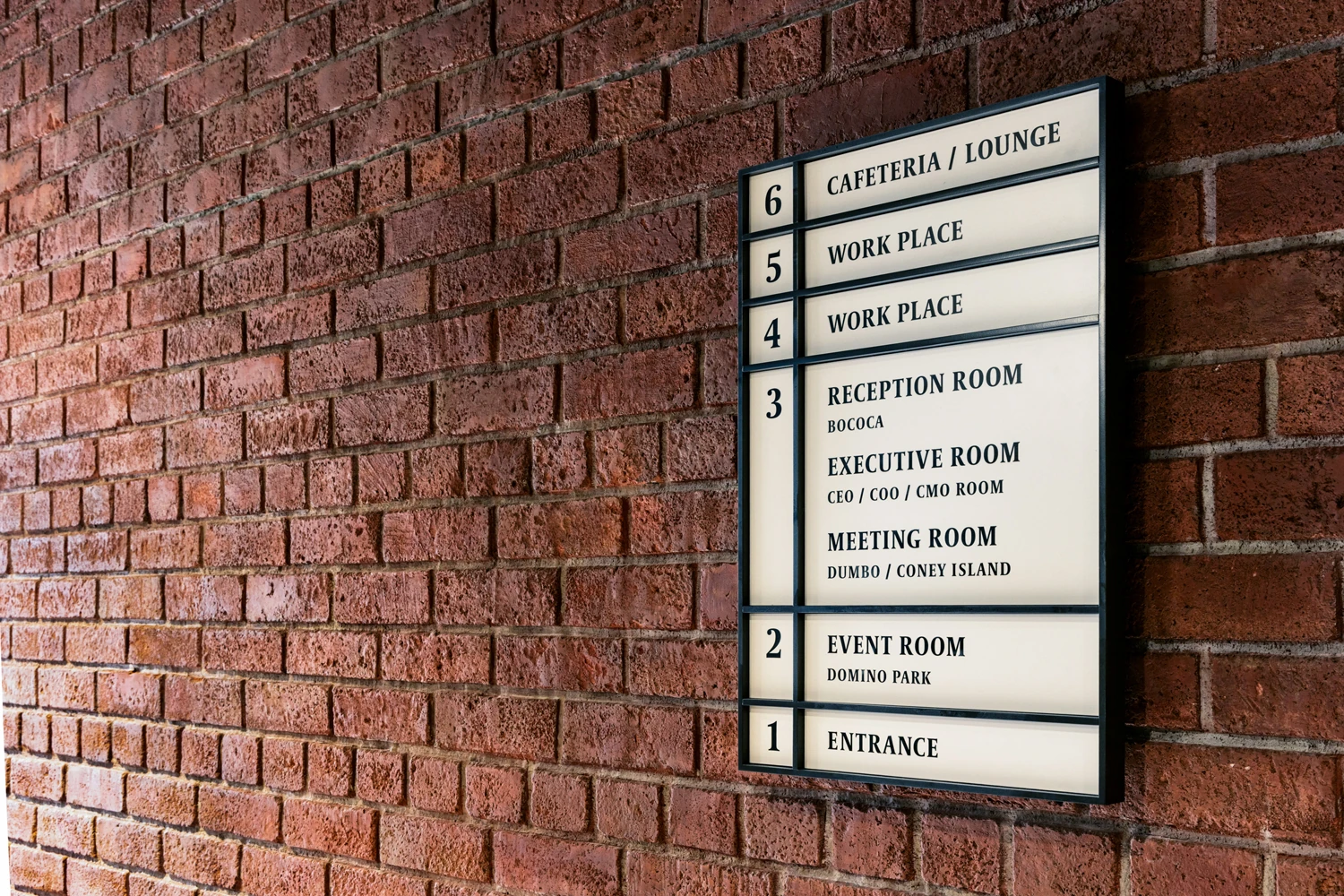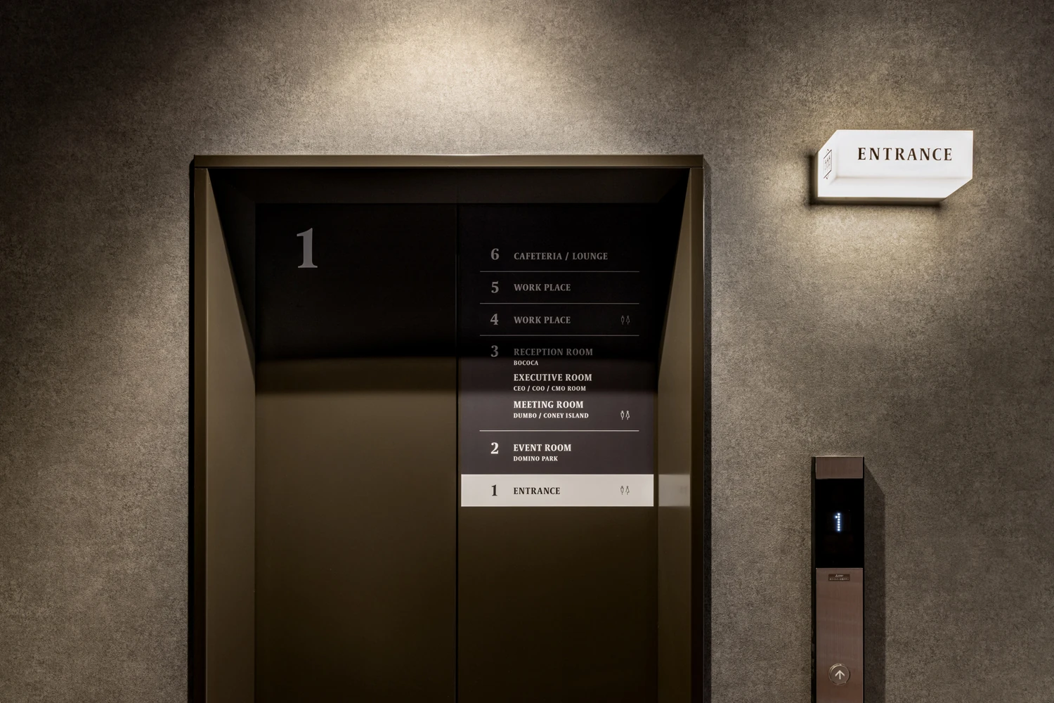 各空間をより心地よく感じてもらうため、サイン計画では建物全体を通した印象の統一感を意識。サインは単なる案内ではなく、社員が移動するたびにブランドの世界観や思想に触れられる接点として位置づけ、視認性や素材感にも配慮しました。オリジナルピクトグラムの制作や、事業理解を深めてもらうために空調設備記号をモチーフにしたルームサインを取り入れることで、社内カルチャーが自然と浸透していく仕掛けを施しています。さらに、ミッション・ビジョン・バリューを空間に点在させることで、社員同士の意識共有とエンゲージメント向上を実現。日々、目に入るメッセージは静かに自社理解を深め、行動指針を「読むもの」から「感じて思い出すもの」へと変える役割を担うことを狙っています。