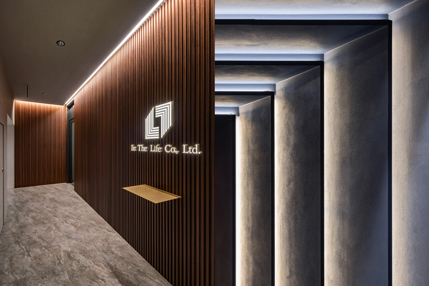 コンセプトは『In The Life Experience』。未来のインザライフ様の姿を体現し、大阪が持つ活気とエネルギー、そして都市の洗練された高級感を空間に落とし込むことで、インザライフの世界観やブランド価値をより深く体感できる場づくりを心掛けました。