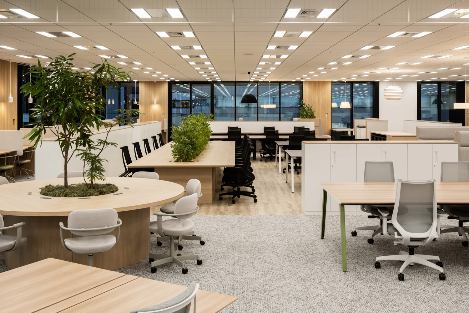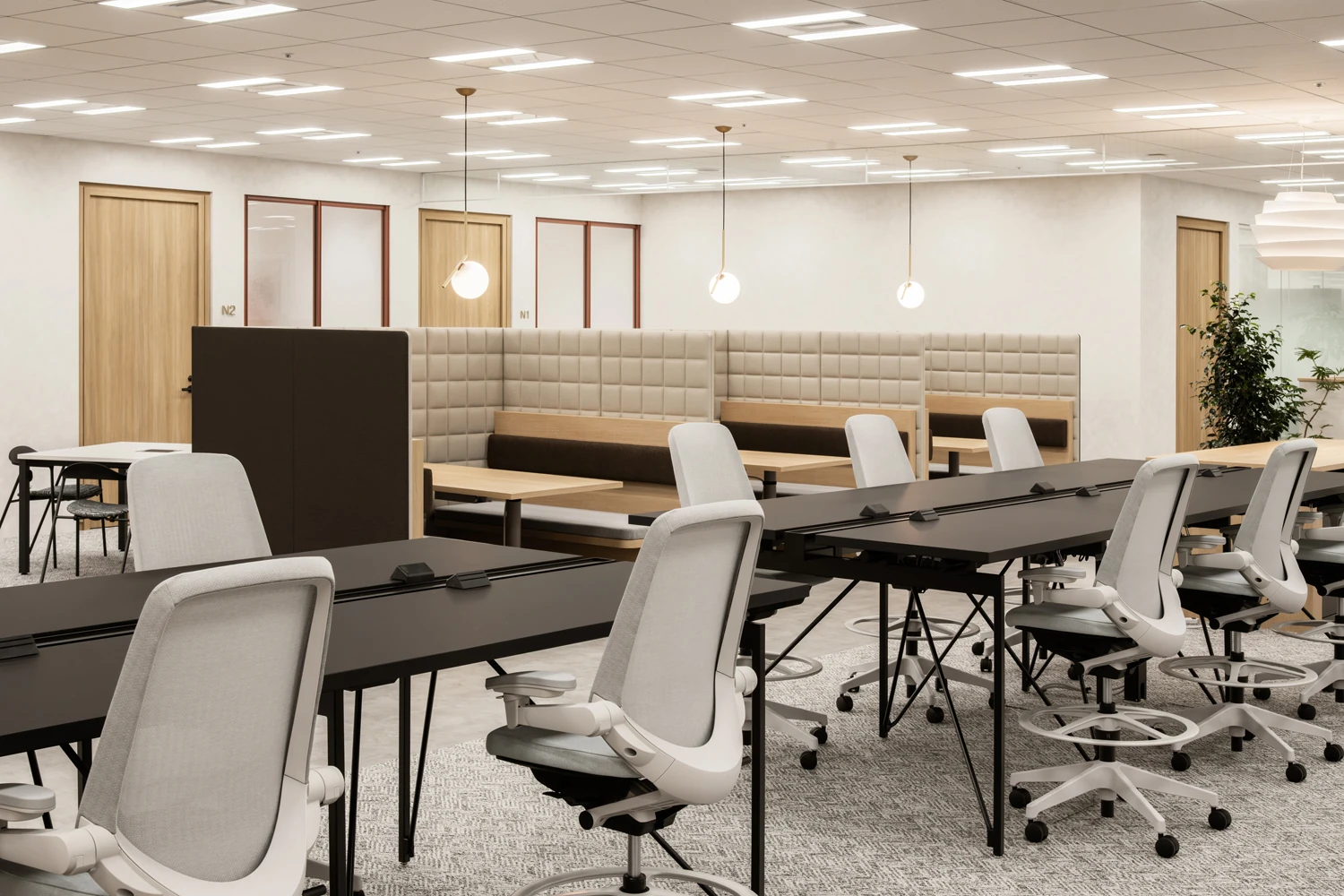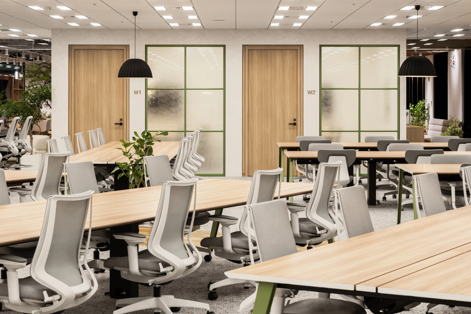 従来は、本社と東京オフィスが別々の拠点として運営されていたことで、部署間やオフィス間に心理的・物理的な壁が生まれ、情報共有や連携にばらつきを感じていたニチバン様。そこで二つの拠点を統合移転し、部署や役割を越えて自然に交流が生まれる環境を整備。組織全体の連携を強めると同時に、企業文化の共有を促進することを目指しました。 -