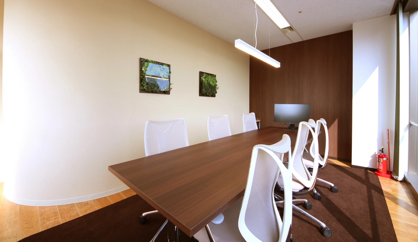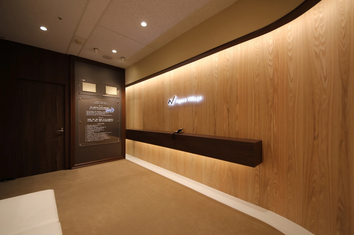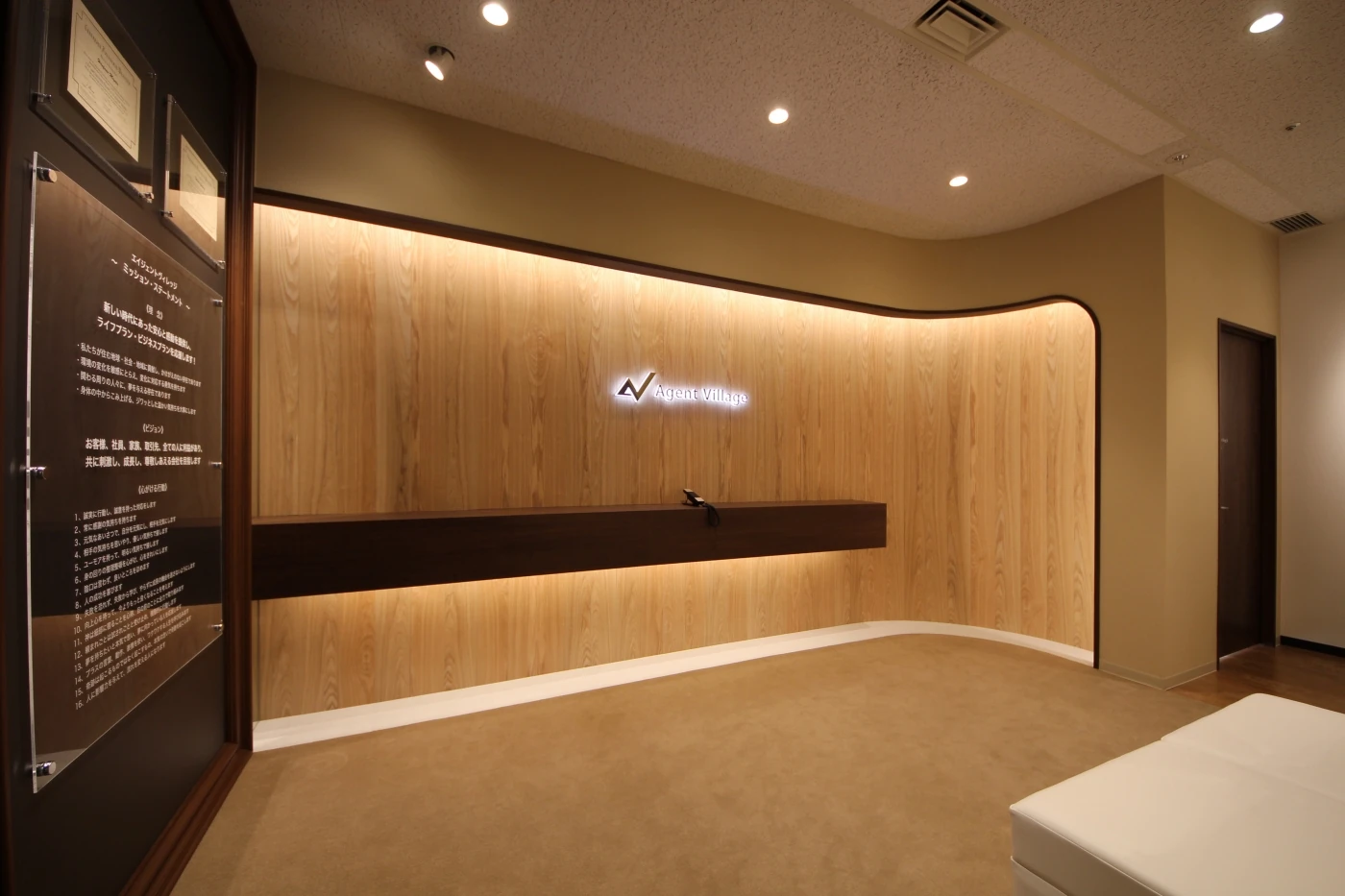 エントランスに足を踏み入れた瞬間、お客様を受け入れる温かい空間が広がります。正面の壁や会議室の壁には天然木や左官など質感のある素材を使用し、R壁が優しさを表現するデザイン設計となっています。LED内蔵のサインが輝きを放ち、そのサイドには企業理念をカッティングシートで記すことで、企業ブランディングを打ち出しています。また、応接室には濃い木目クロスを用いて重厚感を、そして会議室にはカラフルなチェアとクリアガラスで開放感を。素材の温もりがあふれ、お客様に精一杯のお出迎え「WELCOME」の気持ちを表現する、優しいオフィスが完成しました。