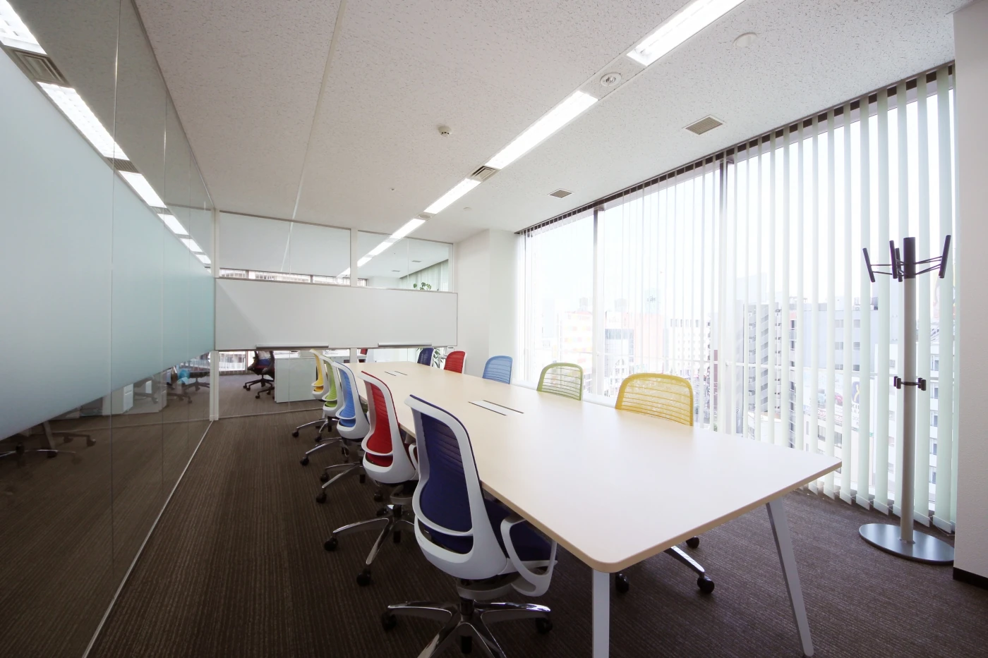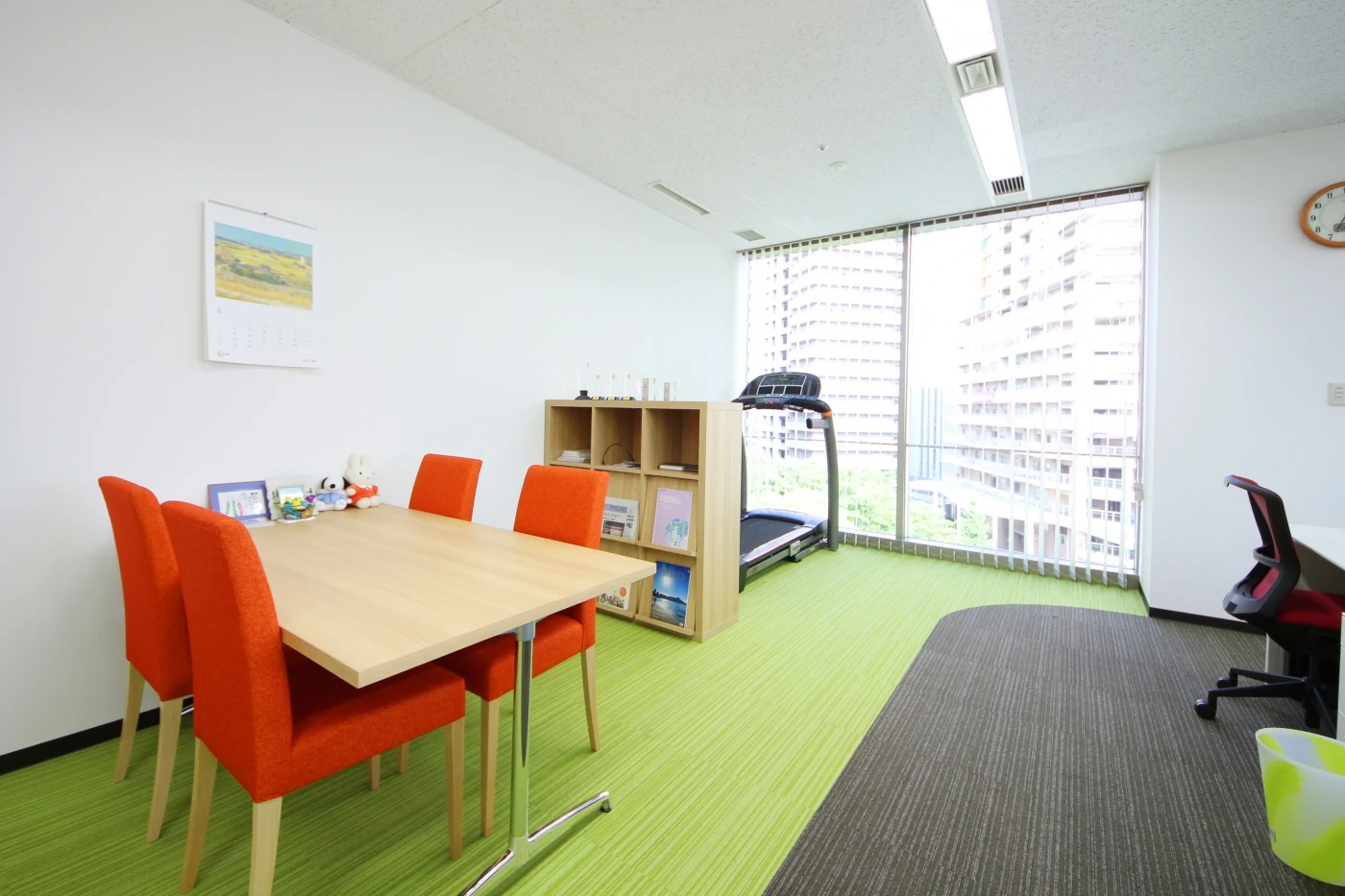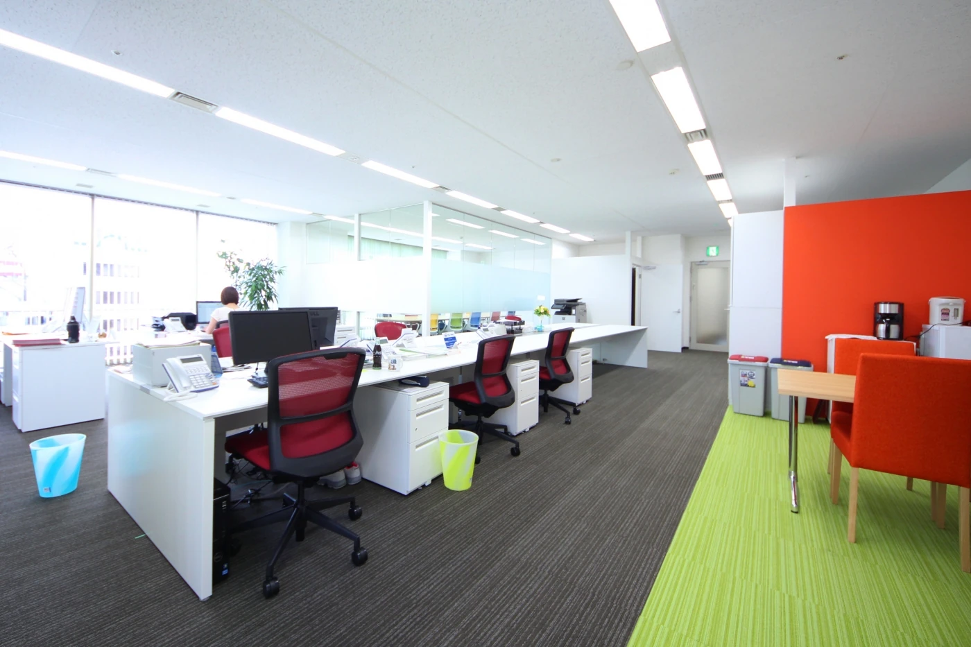 エントランスに足を踏み入れた瞬間、お客様を受け入れる温かい空間が広がります。正面の壁や会議室の壁には天然木や左官など質感のある素材を使用し、R壁が優しさを表現するデザイン設計となっています。LED内蔵のサインが輝きを放ち、そのサイドには企業理念をカッティングシートで記すことで、企業ブランディングを打ち出しています。また、応接室には濃い木目クロスを用いて重厚感を、そして会議室にはカラフルなチェアとクリアガラスで開放感を。素材の温もりがあふれ、お客様に精一杯のお出迎え「WELCOME」の気持ちを表現する、優しいオフィスが完成しました。