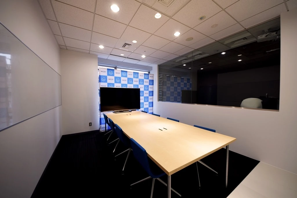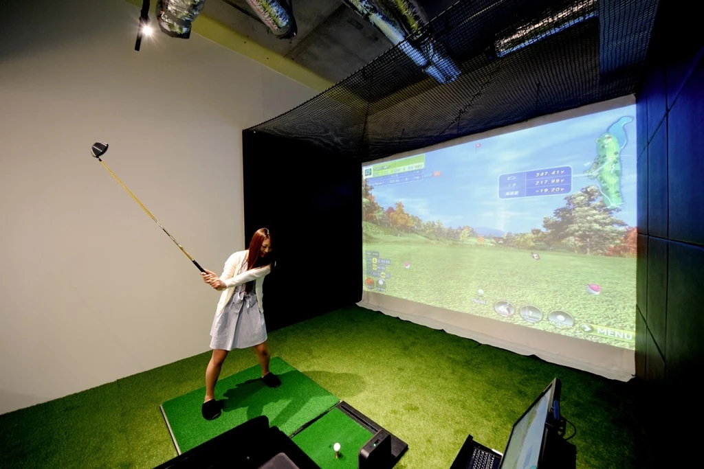 「他にはないコールセンターを。」というところから「近未来」をコンセプトにオフィス設計デザインをご提案させていただきました。ホワイトのタイルに間接照明やダウンライトの光を当てることで、近未来的な空間を演出しています。また、ブルーの照明が入ったアルミのサインがエントランスでの存在感を放ちます。その他にも「はたらく人を第一に」との考えから、今回初めて導入したバーチャルゴルフやペリカウンターを転用したベンチが、オフィスを楽しい空間にしています。