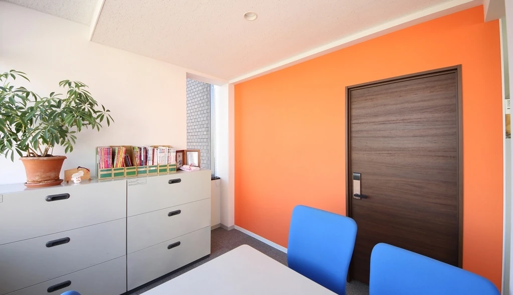 名古屋の中心である栄のど真ん中に位置するビルの絶好の眺望を生かすためにガラスを多用し、新しい風を運ぶ開放的なオフィス空間設計を行いました 。採光を取り入れるために、フォグラスシートのバランスを調整したことで、オフィスが明るくいきいきとした印象となりました。こだわりの重厚感のある朱色の木目からは、信頼感や安心感を連想させるオフィスデザインです。木目をバランスよく取り入れた空間はとてもグリーンが映え、来訪されるお客様にもおもてなしとリラックス効果をもたらします。リフレッシュスペースにはビタミンカラーを取り入れ社員様がくつろげるような空間を演出しました。
