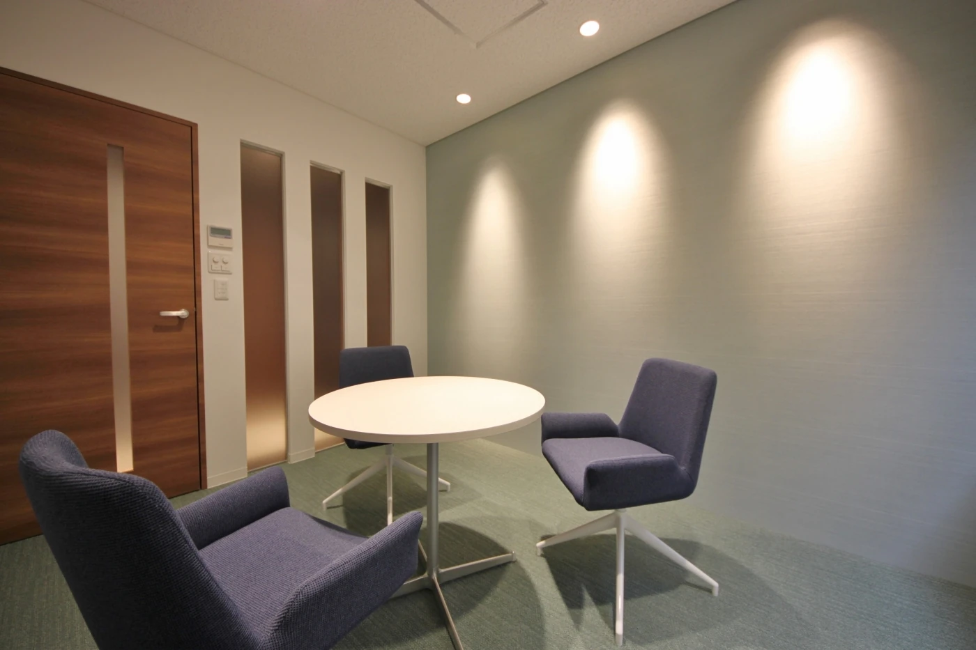 今後の事業拡大を見据えた事務所の改装のお手伝いをさせていただきました。タイル、間接照明、LEDサインなどのこだわりのある素材の使用して高級感を表現しつつ、空間全体では来客者に安心感を感じていただけるようにデザインしました。会議室や応接室は人数や打合せ内容にあわせて使い分けができるよう、カジュアルなお部屋からシックなお部屋まで各個室の雰囲気を変えています。執務スペースは各個人がより集中できるように一人当たりのデスクのサイズをゆったりと確保するとともに、壁面の色のトーンを変えることで明るく落ち着いた雰囲気の中で仕事ができるようにしました。