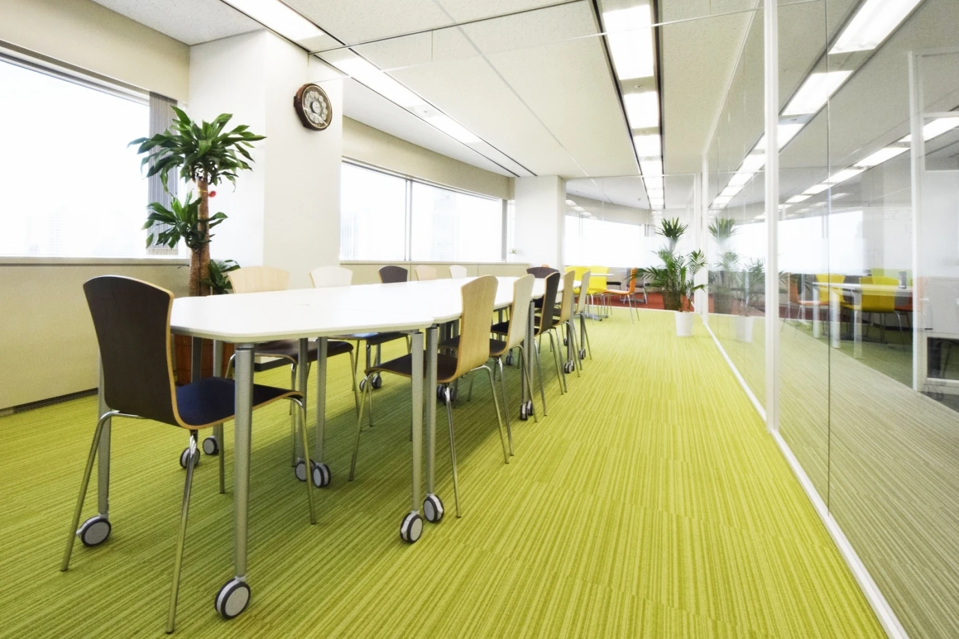 執務室にはコワーキングスペース造りポイントカラーを用いることで活気溢れる社風を表現しました。外光を取り入れるため仕切りはガラスをメインに取り入れ、企業の透明性を表しました。