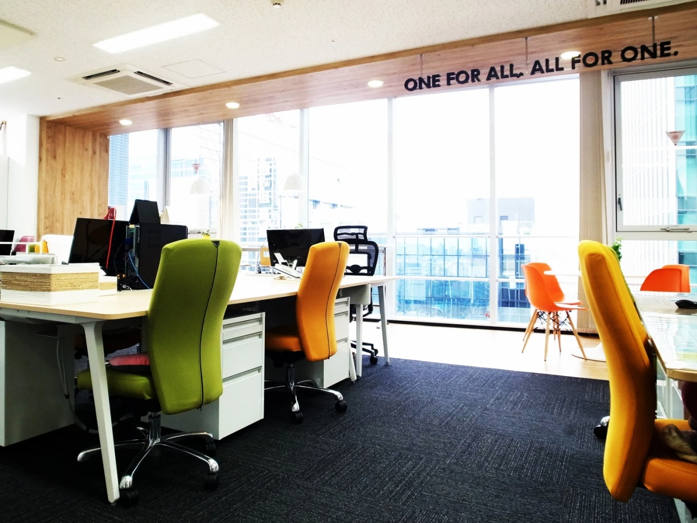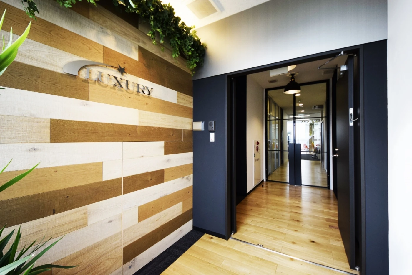 通路の先には「ONE FOR ALL, ALL FOR ONE」社訓が掲げられ、毎日出社する際に必ず意識できるような仕組みです。