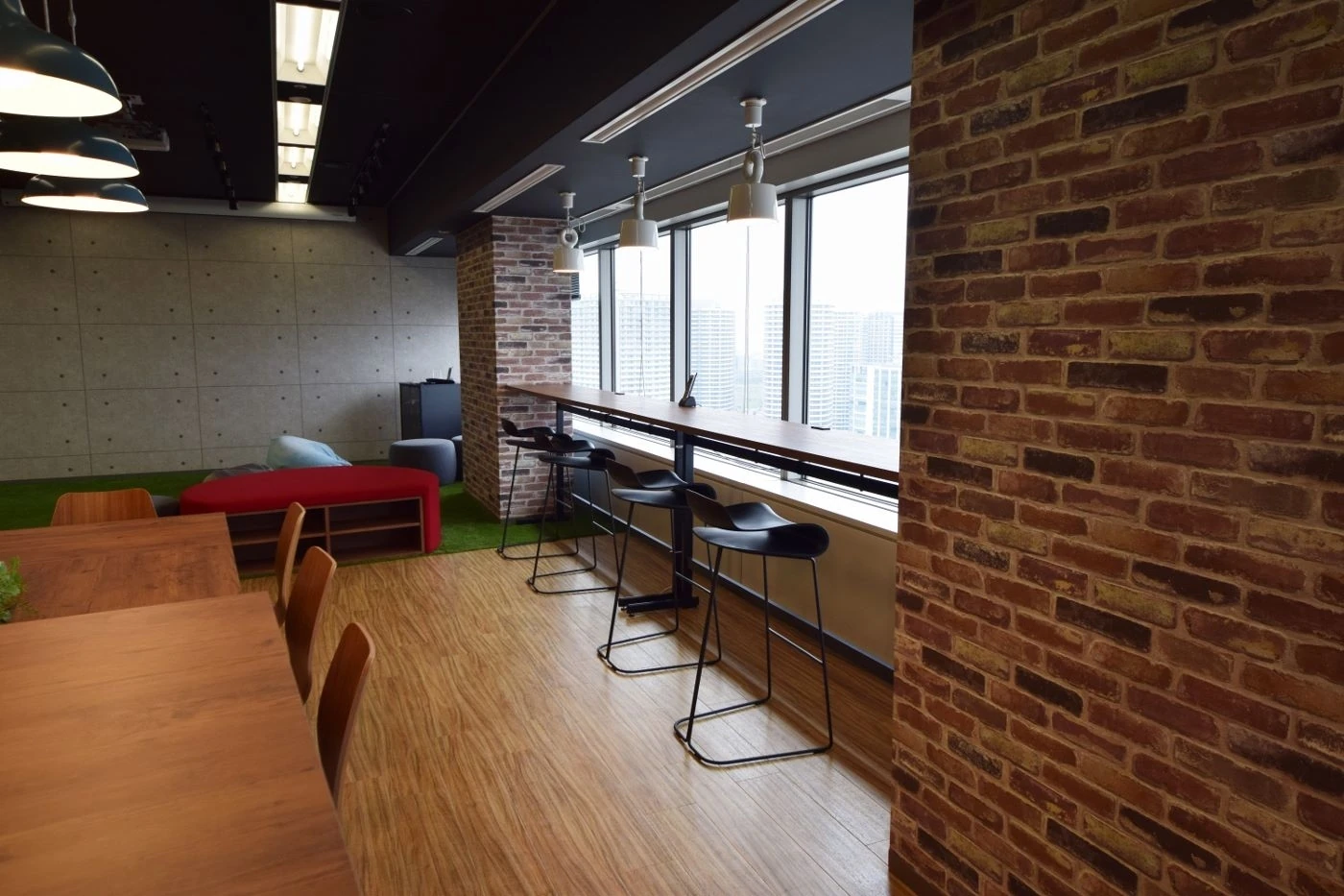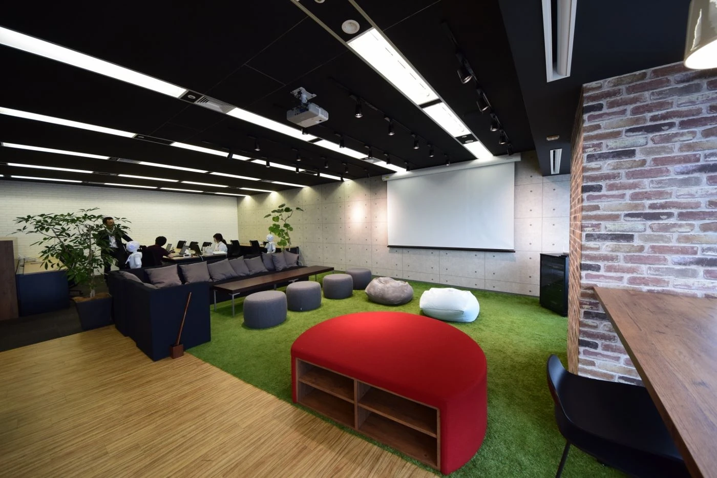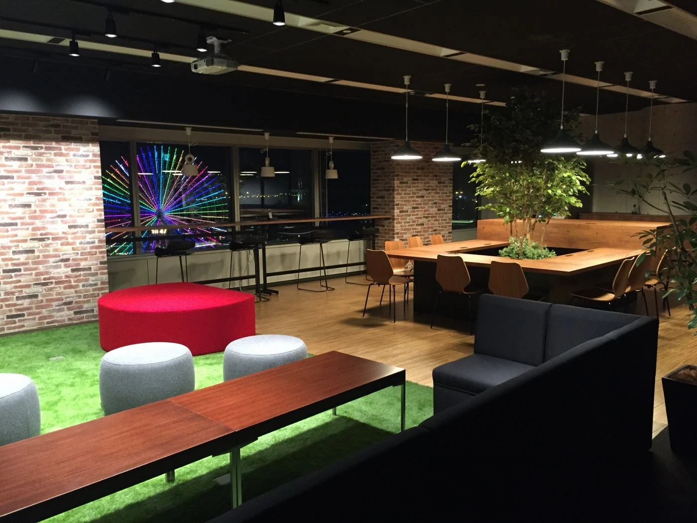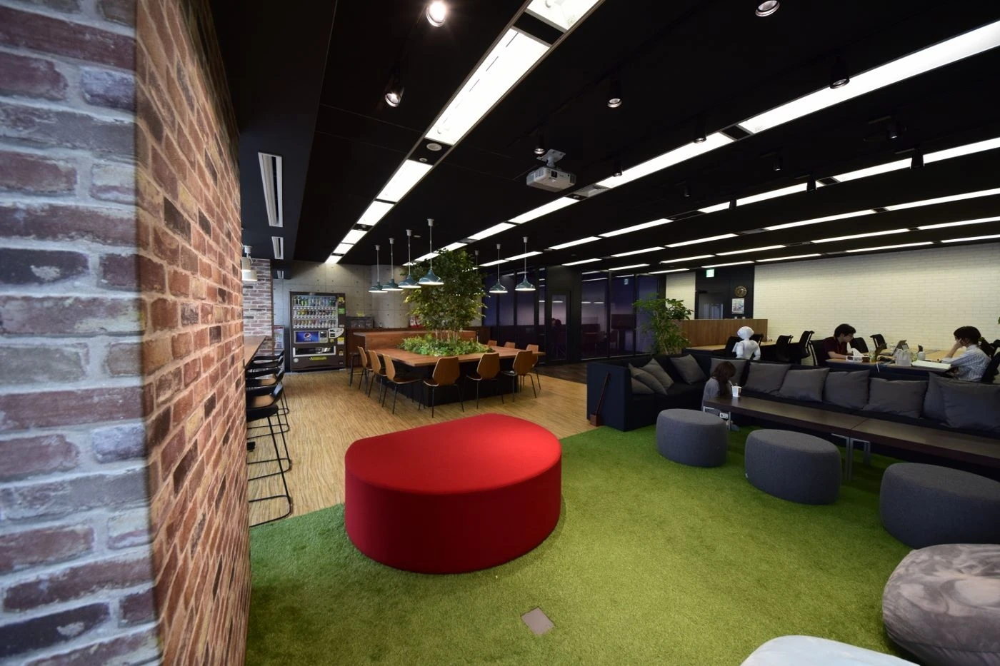 リフレッシュする時には、みなとみらいを一望できる窓面席でコーヒーを飲んだり、芝生エリアで靴を脱いでのんびりしたり過ごすことができます。大画面スクリーンでのスポーツ観戦やベンチソファ―席での和気あいあいとしたブレストミーティングなど、シーンに合せて柔軟な使い方のできる空間が完成しました。