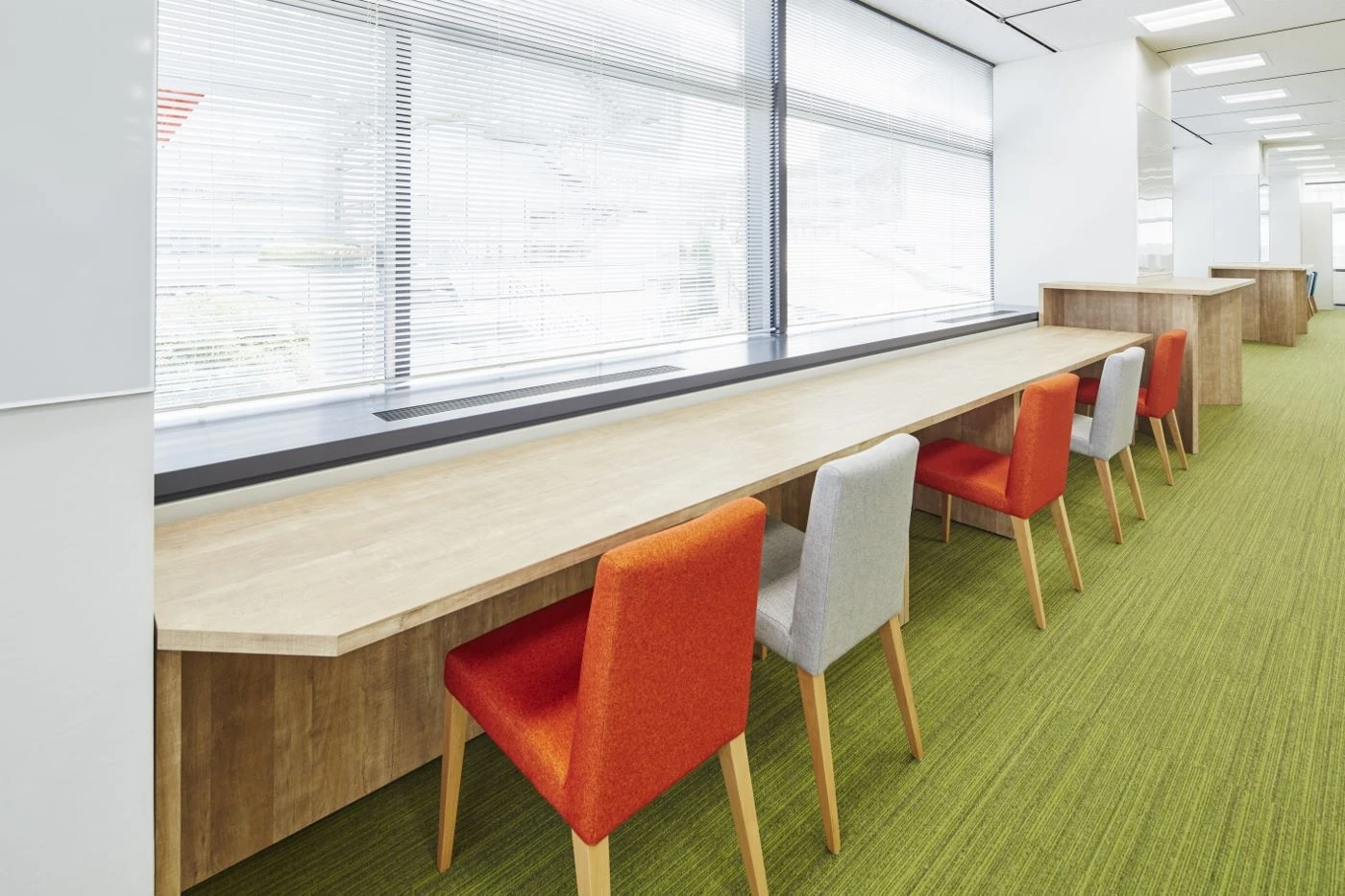 地下一階の窓のないオフィスから、窓面が豊富なオフィスにご移転されました。地下一階で抱えていたクローズな雰囲気を無くしたいというご要望を頂き、全体の空間作りからデザインのテイストまで、コミュニケーションとあたたかさを重視してプランニングさせて頂きました。また、窓側のリフレッシュスペースや柱を有効に使用した立ちMTGスペースなど、様々なコミュニケーションスポットを設け、より多くの働き方ができる空間となっています。