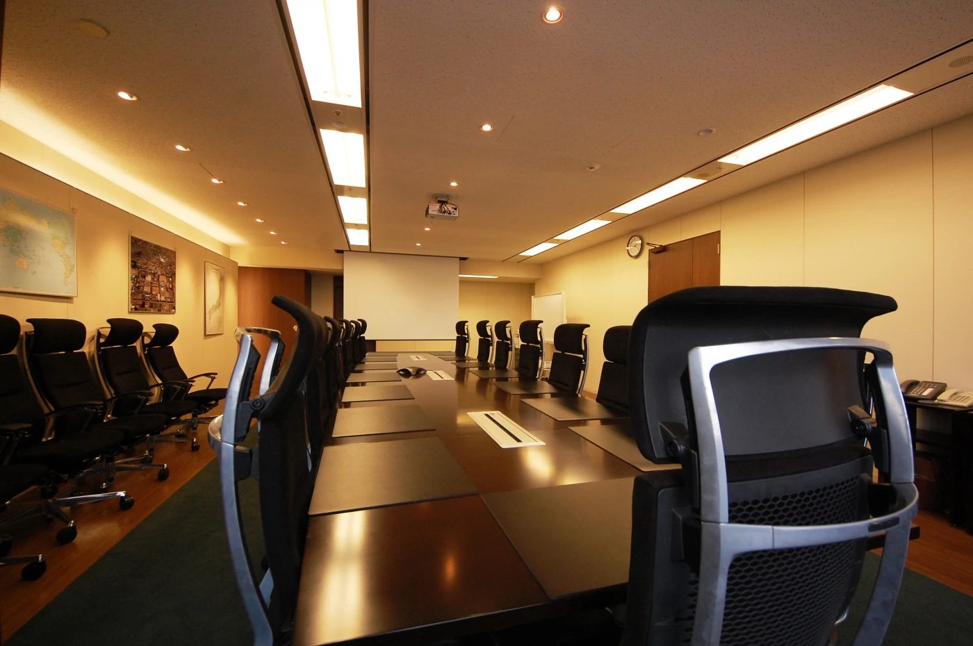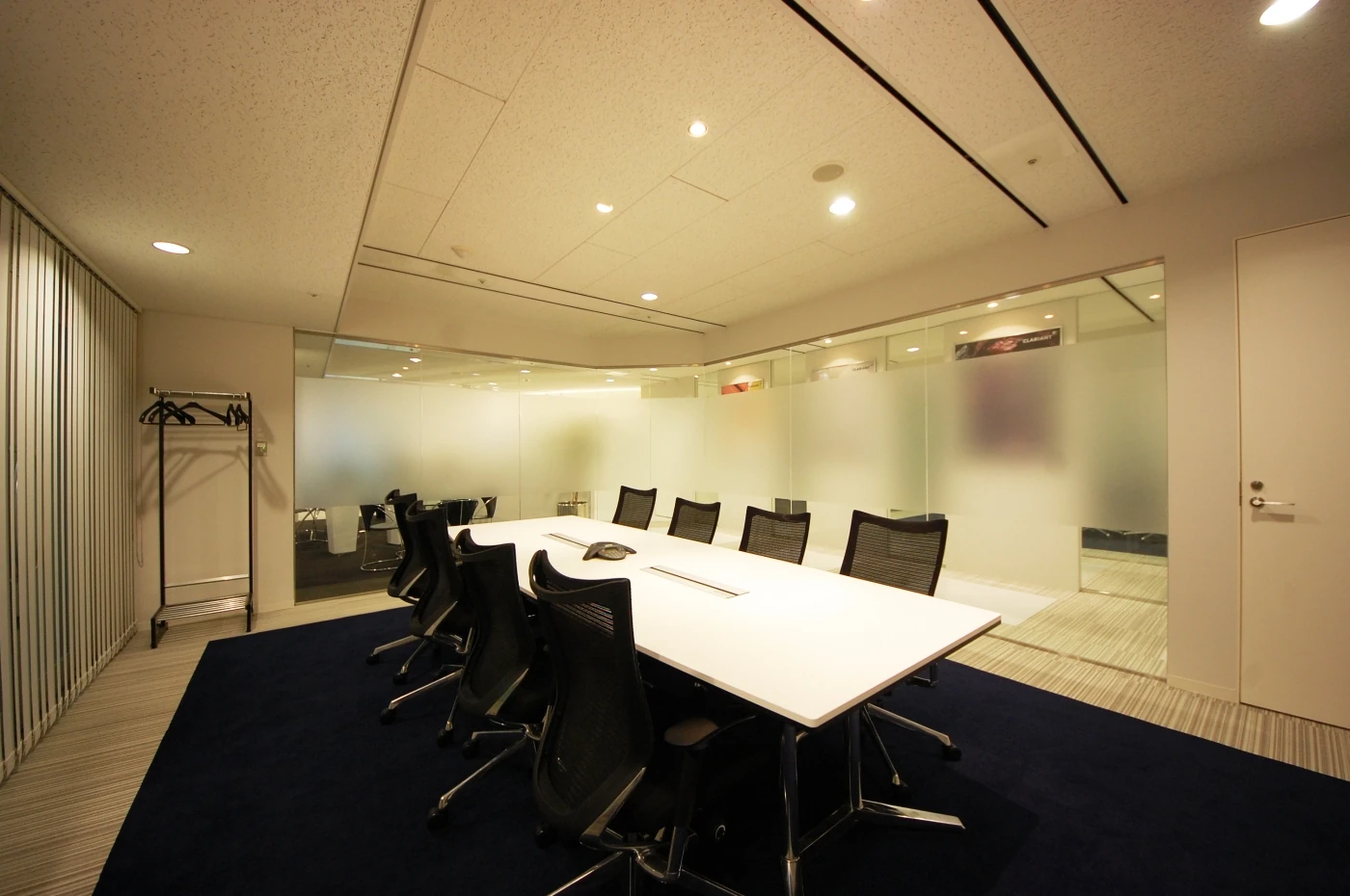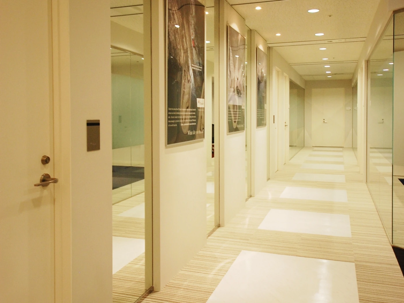 企業統合をされるタイミングでの改装のご提案。それぞれの会社らしさを演出し、「先進性」「ハイクオリティー」「ハイセンス」な企業イメージを訪れた方々に発信する場として戦略的にも活用できるデザインにしたいというご要望をいただきました。全体的に清潔感のある明るいイメージになるよう、白を基調にしたデザインです。エントランスでは、カウンターや腰高の壁面部の一部にはアクセントとしてミラー調の素材を取り入れ、ロゴが栄えるよう、その他の配色にも落ち着いた色目を採用しています。一角のガラス面に大きな世界地図を用い、グローバルな会社ということも表現しています。