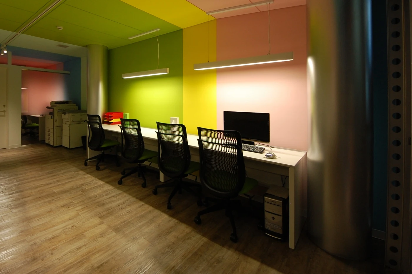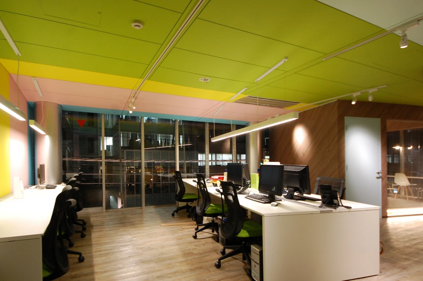 ポップさと木目が調和するオフィス