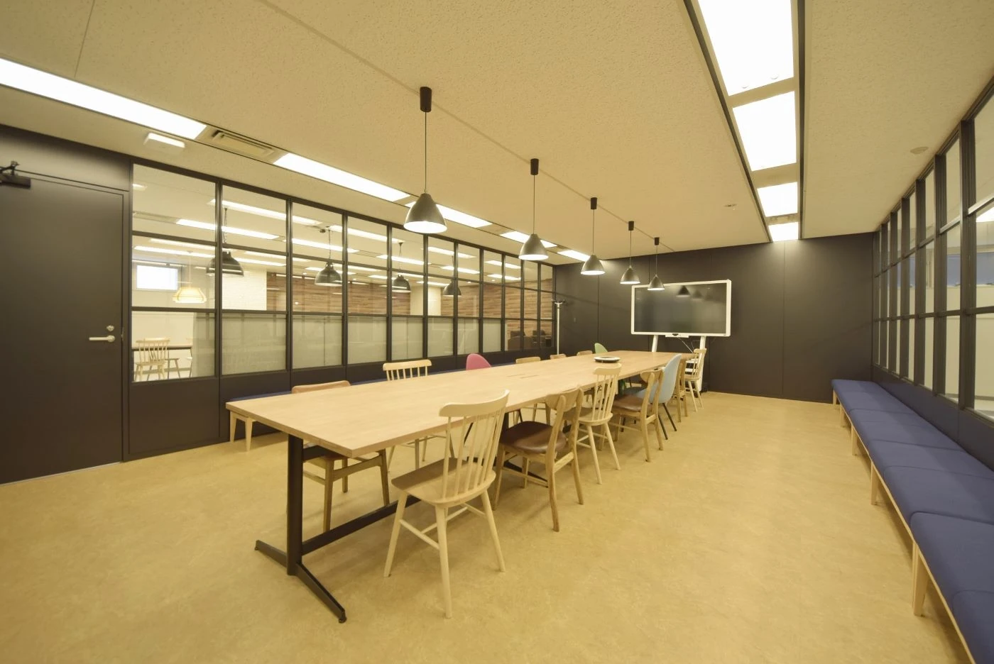 8つの会議室は植物の名前をルームネームとし、各部屋コンセプトに基づき豊かなカラーバリエーションでお客様をお迎えします。一部の壁にスライディングウォールを用い、普段使いは小分けの個室として、必要に応じて大人数でのセミナールームとして対応可能なフレキシブルなスペースとなっています。