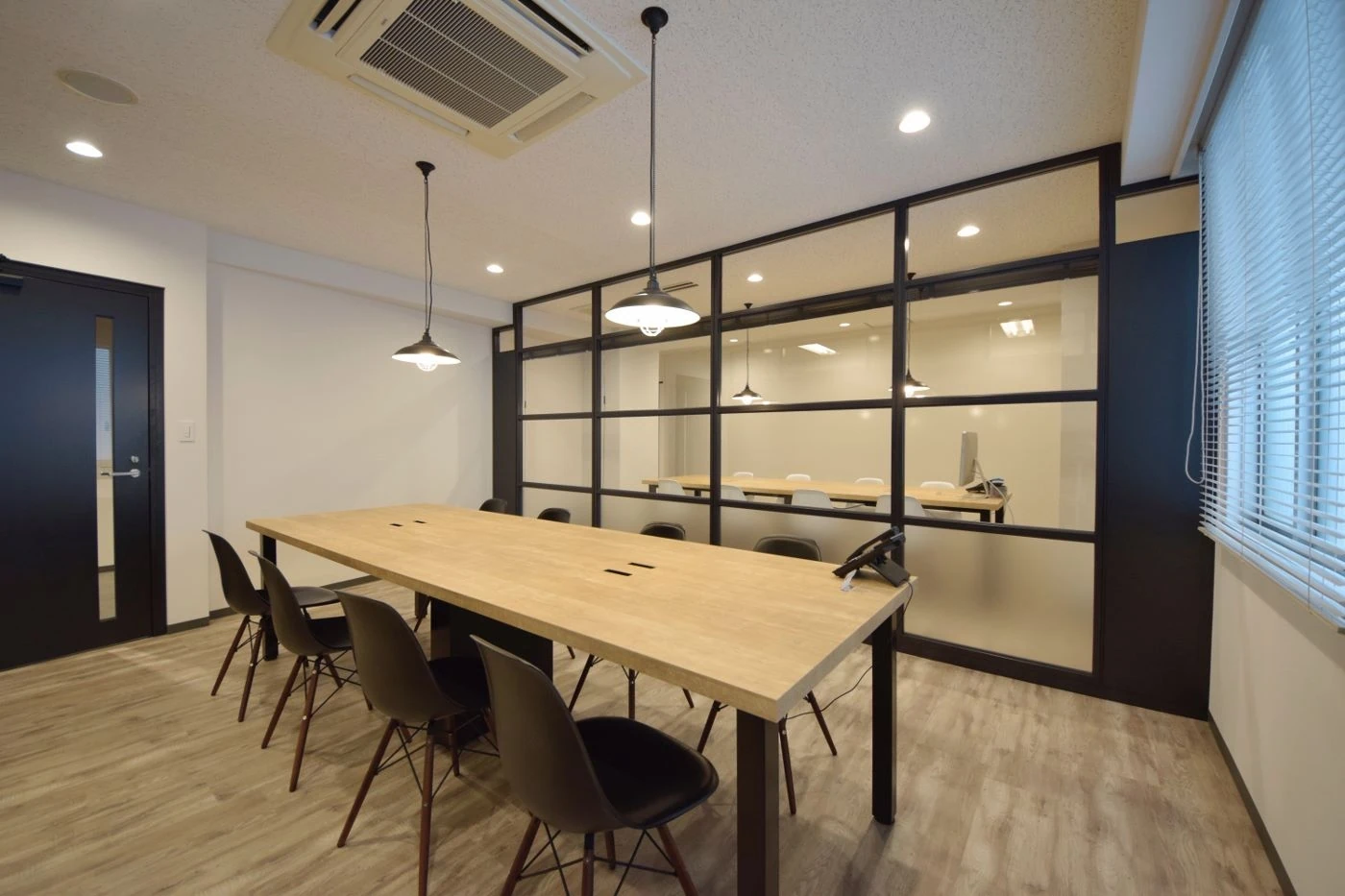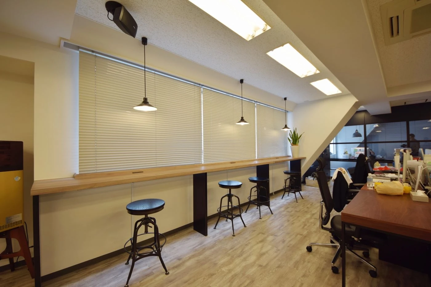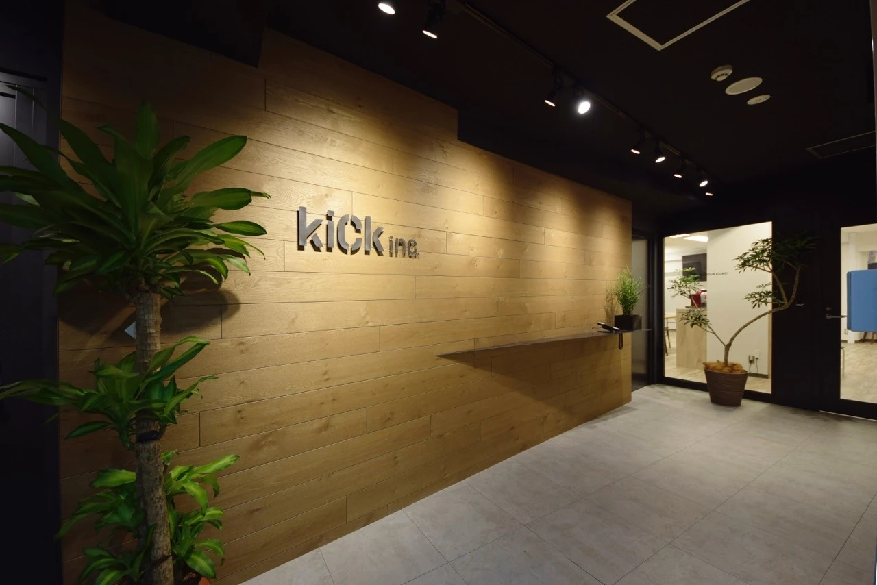 クリエイティブなスペシャリストたちが集うkiCk様のオフィス。さらなる仲間を迎えるためのご移転で、今回は無駄をそぎ落とし、シンプルながらも素材感を感じられると同時に機能性を重視したオフィスプランニングをさせていただきました。エントランスには鉄さび塗装を施したロゴサインが掲げられ、フロア全面には木目調の床材を施し、アクセントとして柱や照明器具・什器は黒でまとめることによりメリハリを感じられるオフィスに仕上がりました。