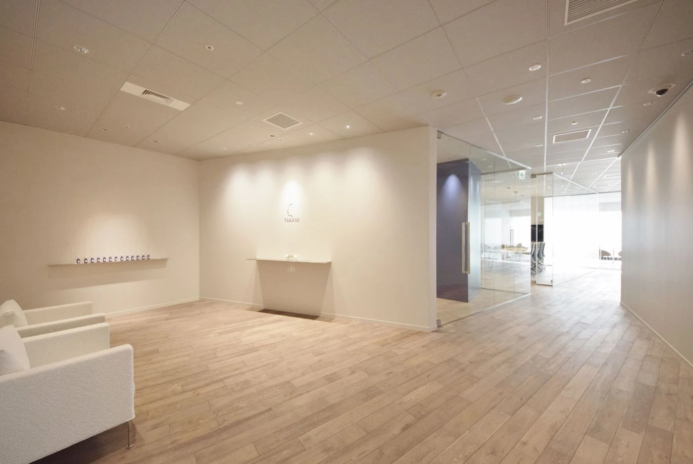 「本物」や「本質」をキーワードに、質の高いワンランク上のデザイナーズオフィスを空間設計しました。オフィス空間全体をフローリングやガラスを用いシンプルで開放感溢れる空間に仕上げつつ、随所にコーポレートカラーであるタカミブルーをアクセントで取り入れデザインしました。今回のご移転を機にフリーアドレスの導入、ラウンジエリアと呼ばれる多目的エリアでは、社員の皆様が自身のニーズに合わせて働き方が選べる「新しい働き方」が実現。また、製品発表会やセミナースペースとしても活用でき、汎用性のある空間となりました。細部の仕上げまでこだわり抜いたクオリティの高いデザイナーズオフィスを、お客様と一緒に創ることができた素敵なご移転プロジェクトでした。