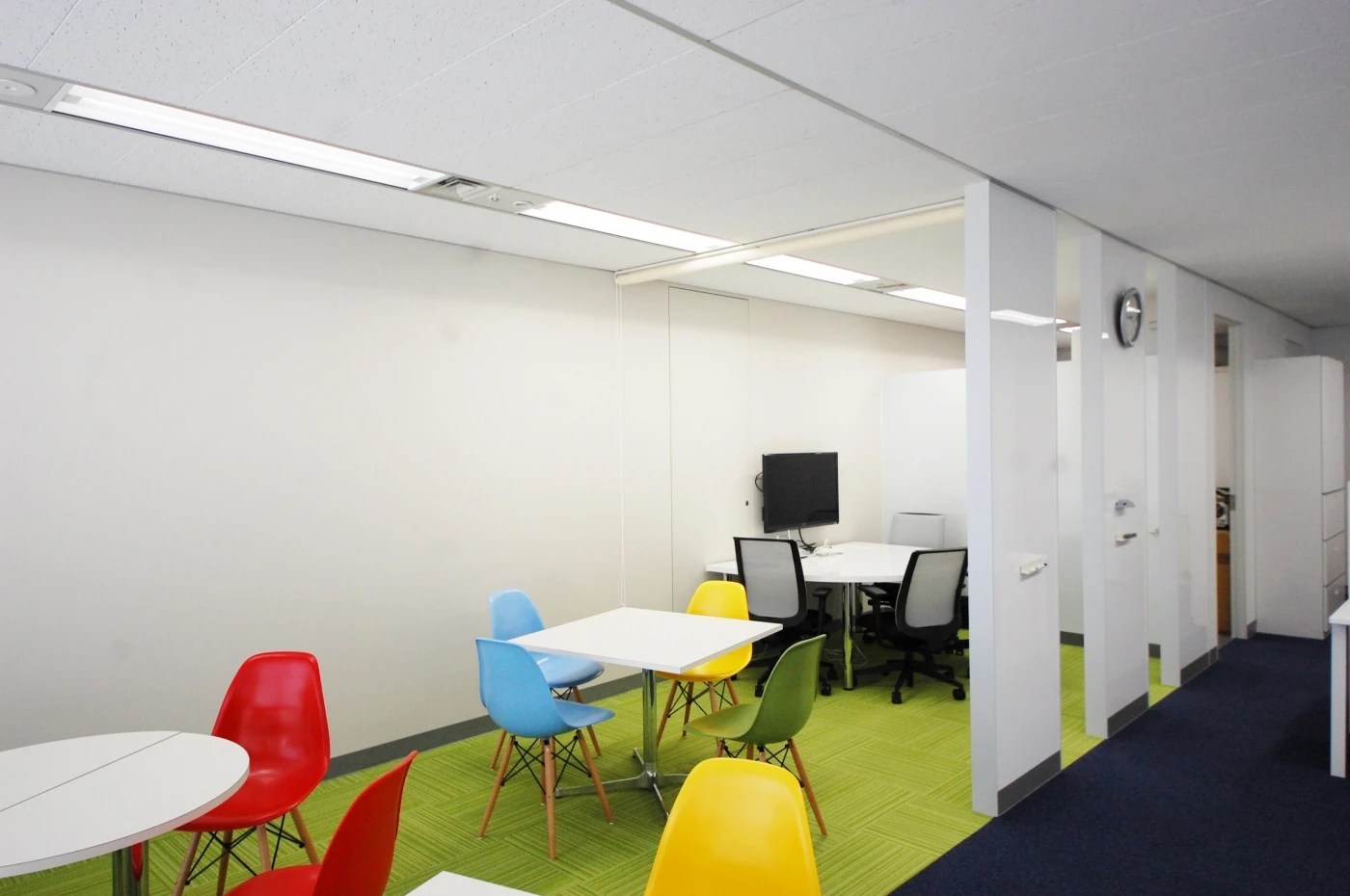 ワークスペースには、エンジニアの方達がクリエイティブに働ける様々な仕掛けを凝縮しました。ライブラリー付きのリフレッシュエリア、チーム単位で働けるコワーキングスペース、PCを持って気軽に集まれる立ちミーティングスペース、自席から振り返ればすぐに打合せができるデスクレイアウトとホワイトボード天板のテーブル、そして、壁面ホワイトボード等―。