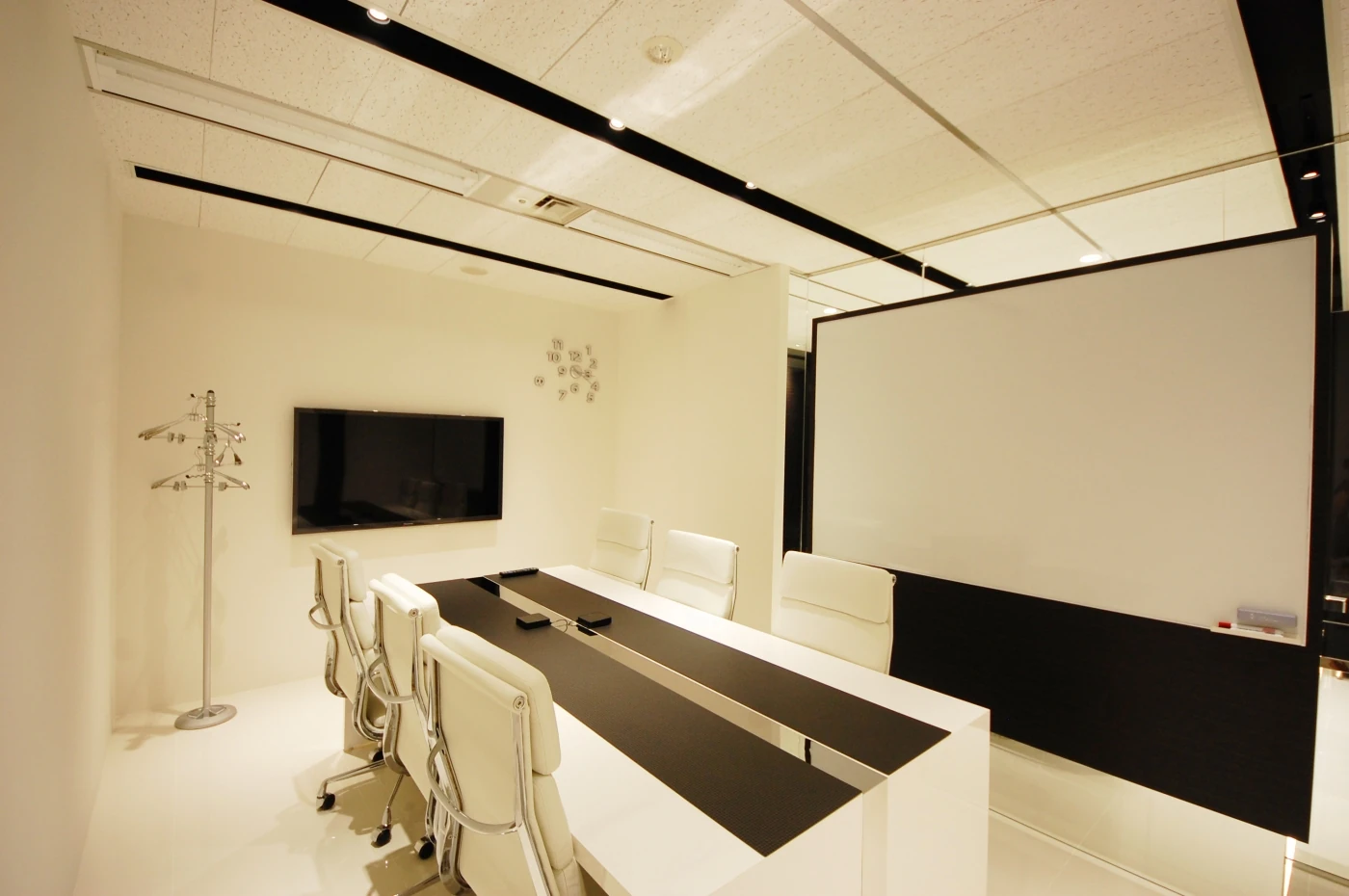 エントランスの裏には、オリジナルテーブルを始め、白で統一した会議室を配置。気品溢れる設えとなっています。