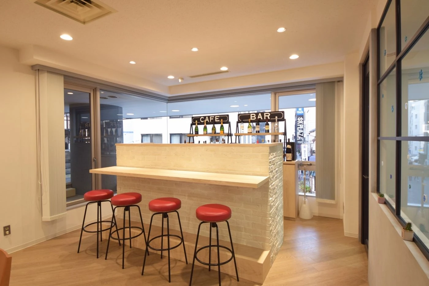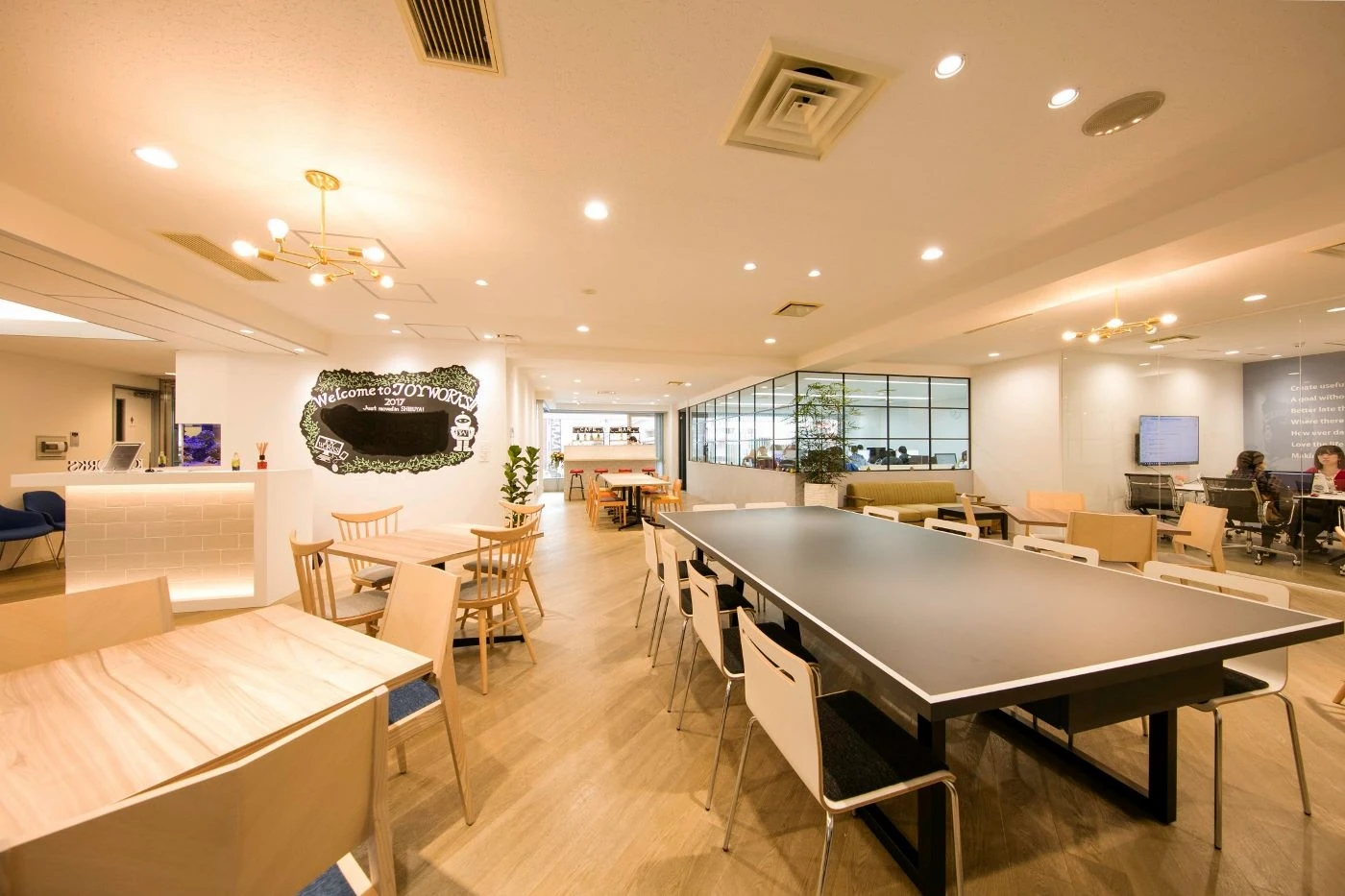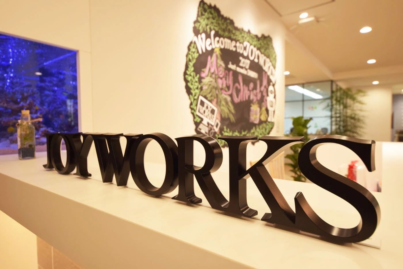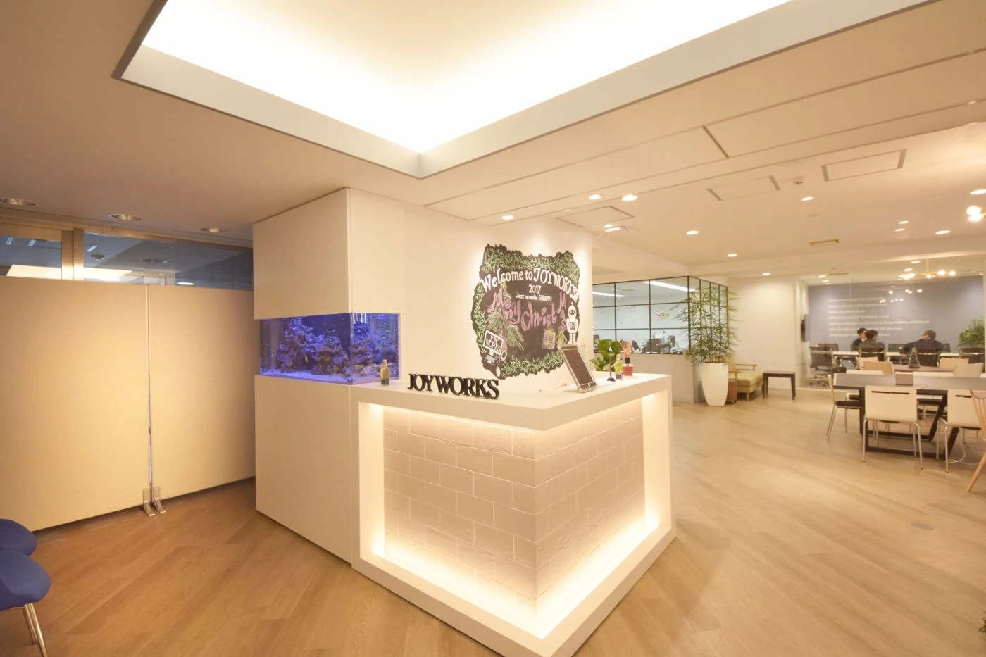 ただ働く場だけではなく、ジョイワークス様らしさの「遊び心」を取り入れたコワーキングオフィススペースです。卓球台やダーツスポットなど、色とりどりのアイテムで常に楽しめるだけでなく、CafeやBarカウンターも設えることでリフレッシュもできる空間になりました。コワーキングスペースに入ってすぐに目に留まる印象的な水槽は、定期的に熱帯魚の種類も変わるようにされるそうで、飽きることなく何度も訪れたくなるようなオフィスとなっています。