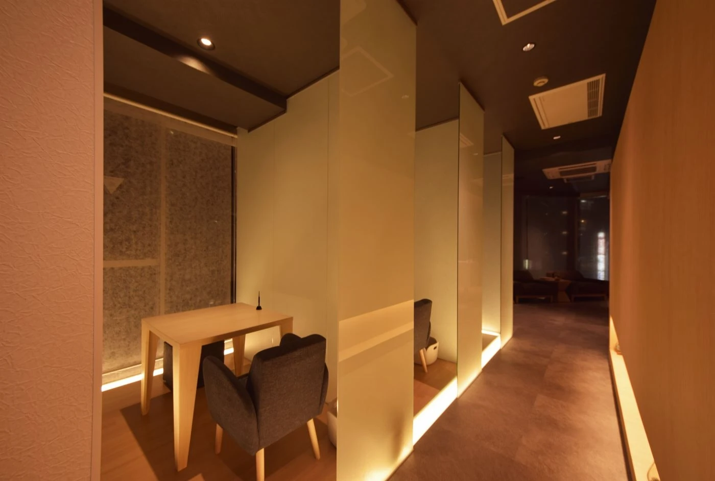 間接照明が印象的に空間を彩る和モダンなデザイナーズエステサロン