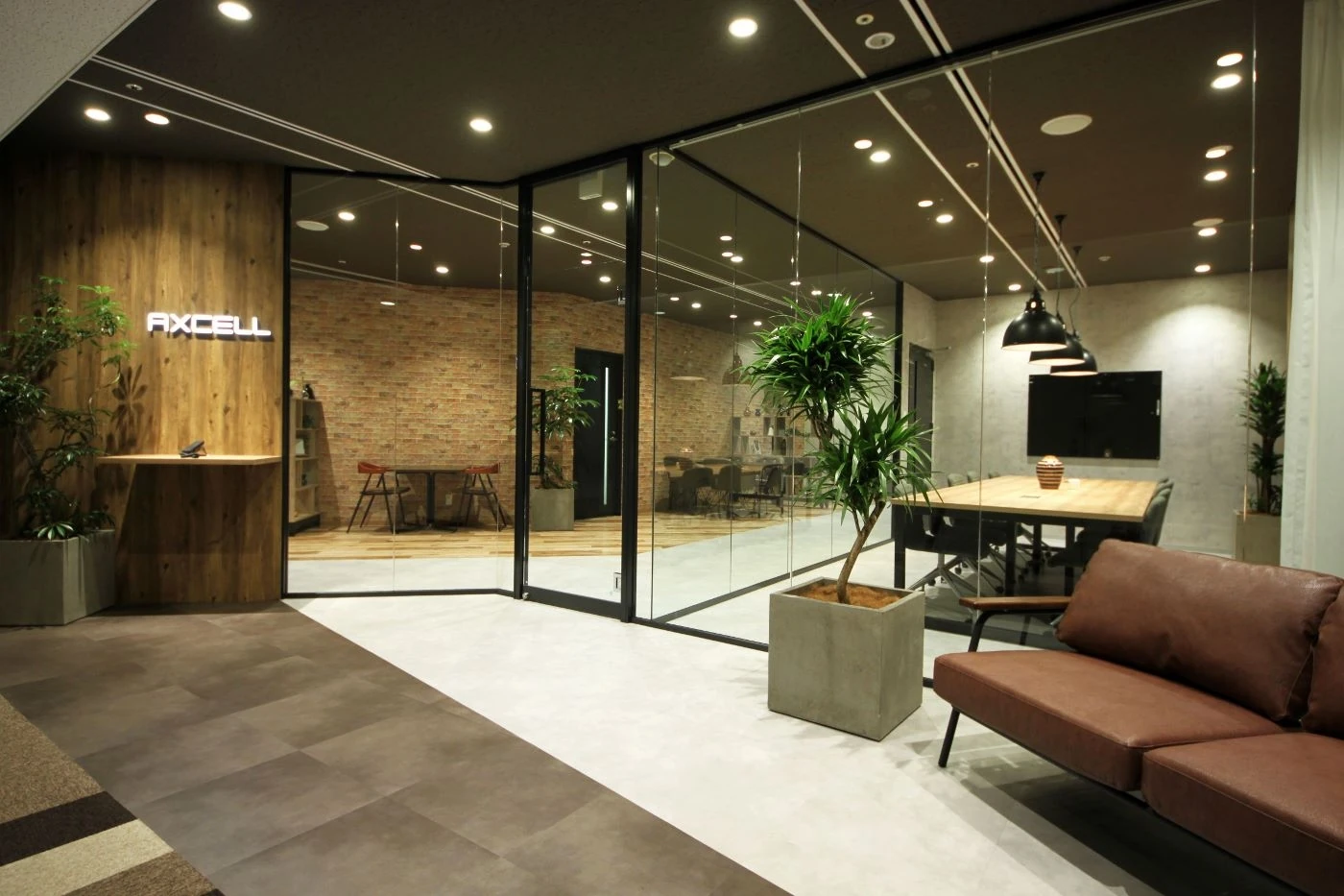 人材派遣事業をされているアクセル様。「派遣の登録や面接にいらした方に居心地の良さを感じていただける空間を。」という想いから、「Be My Guest」をコンセプトにオフィス空間を提案しました。共用部廊下との壁を取り除き、壁をガラスにすることでエントランス空間は広々と開放的な空間となり、より気軽に立ち寄れるような印象に。来客エリアには木目やレンガ調のマテリアルを用い、家具ひとつにしても、素材感を感じるものを採用することで、まるでカフェに居るかのような落ち着きと安らぎのある雰囲気を演出しています。お客様がご購入された小物の数々もオフィス空間のデザインと非常にマッチングしており、まさにお客様と一緒に創りあげたと言える、思い入れのあるオフィスとなりました。