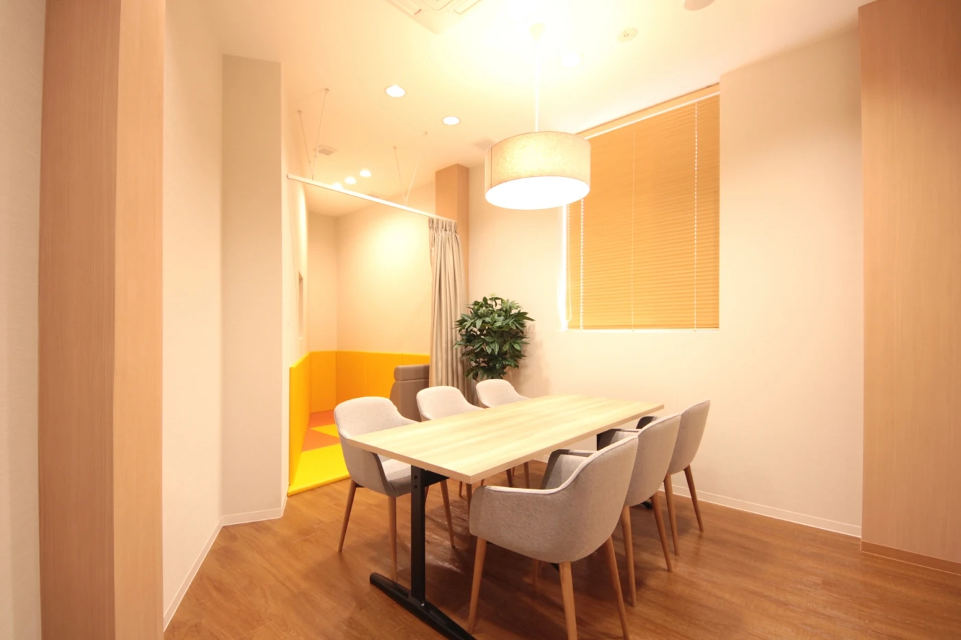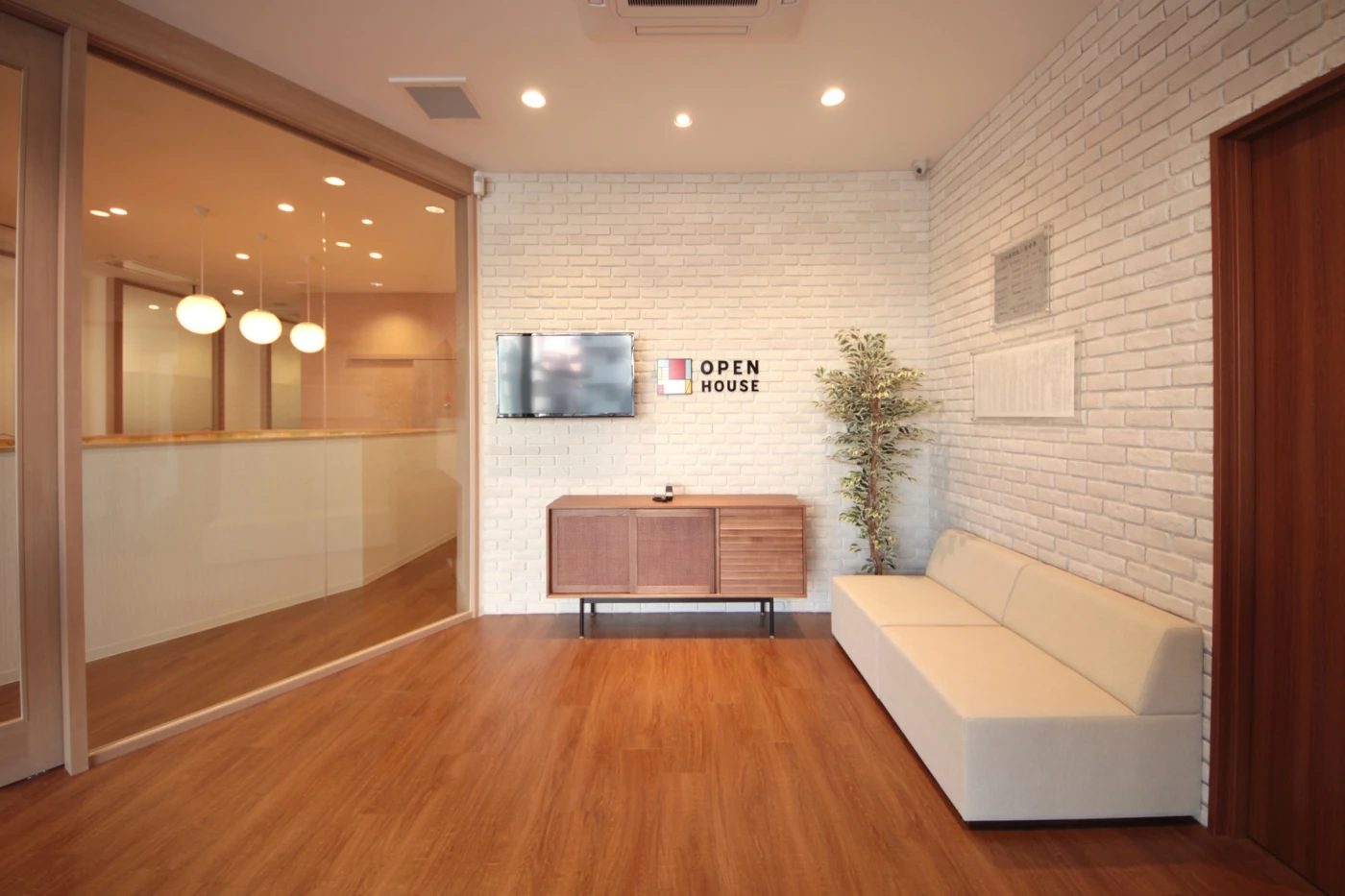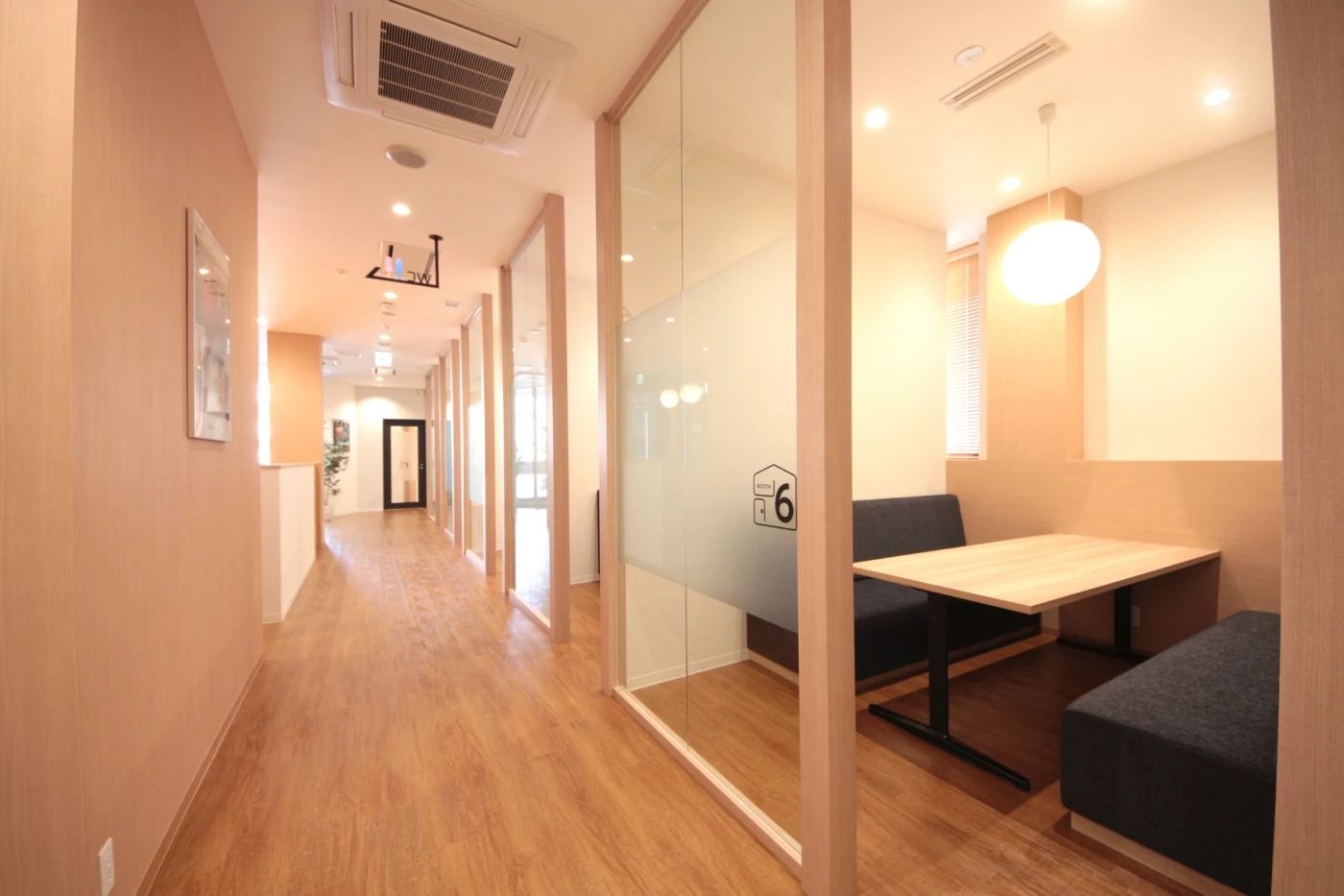 名古屋の御器所エリアという、近年人気の高いエリアへの初出店。3mという高い天井高を生かし、明るく開放的で余裕を感じられる空間作りを心がけました。空間全体のテーマは「LIKE HOME」。憧れのマイホームにいるような感覚でお客様に過ごしていただけるよう、ナチュラルウッドをベースに空間をデザインし、アクセントでブリックタイルやペンダントライトを設えました。また、ブースのひとつひとつは違うコンセプトでデザイン家具をセレクト。ご来店いただく度に、お客様に新しい感覚を味わっていただけるような空間となりました。