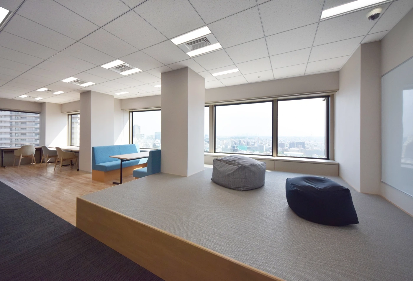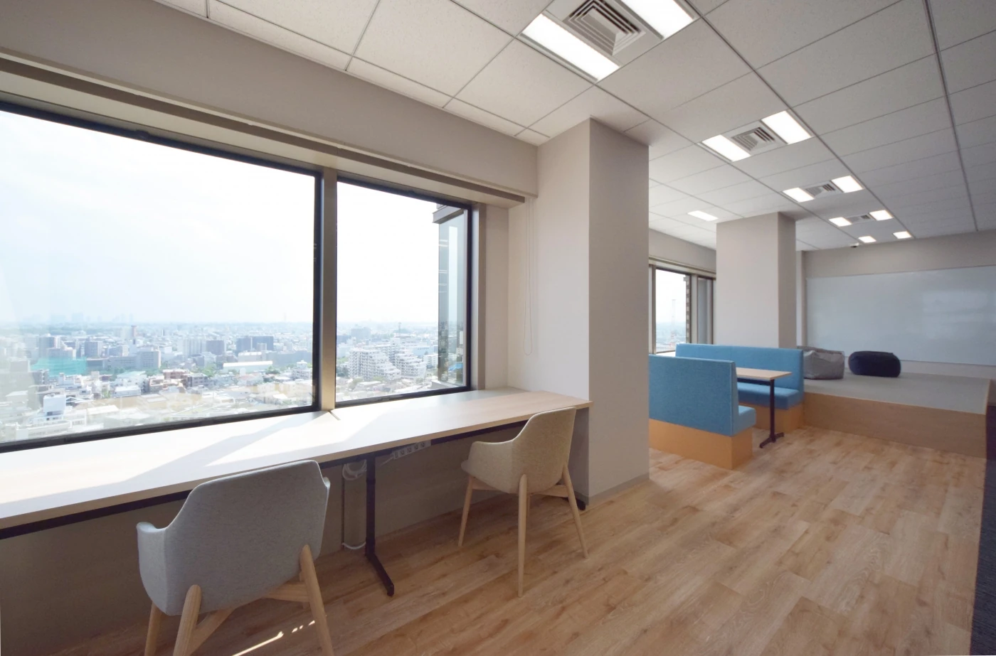 今回は館内増床という機会であり、”次のステップへ進む起点(起源)となる場所”という意を込めて「Genesis Next Place」というコンセプトでオフィスをデザインさせて頂きました。エントランスは、遺伝子を扱う上で重要な信頼感を伝えることができるよう重厚な印象を生み出すタイルを使用しつつ、色味は白とライトグレーを採用し柔らかな印象に。一方で、アクセントでメタリックな素材をデザインに取り入れることで、先進さやクリーンさ、ソリッド感を表現しています。「ホワイトボードをたくさん使って打合せをしたい」というご要望にお応えし、20名収容可能な会議室とワークスペースは壁一面にホワイトボードを取付け、活発なコミュニケーションを促しました。リフレッシュスペースには畳のエリアをつくり、明るい窓から差し込む自然光で気持ちのよい空間を。全体をとおして、社員様にとって居心地の良いオフィスを目指してデザインしました。