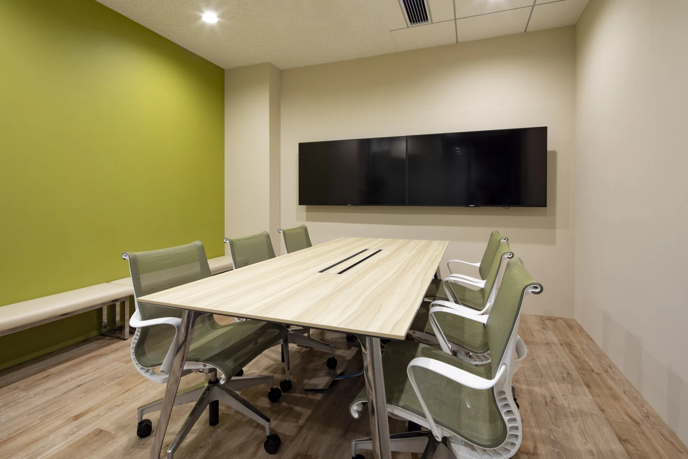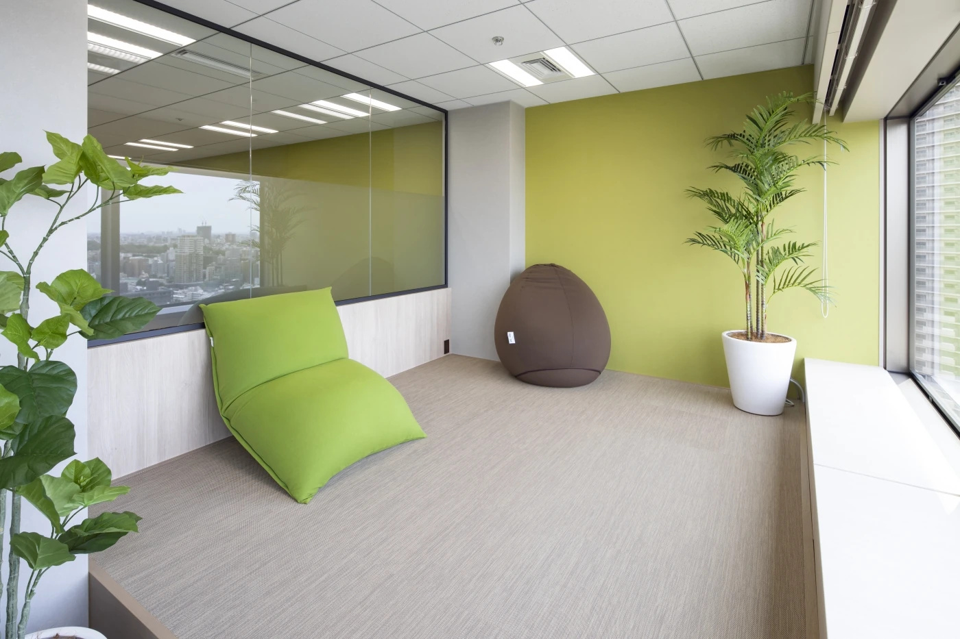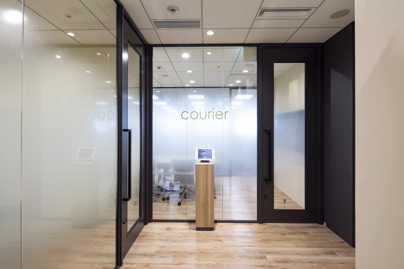 社員様の増員に伴い、快適なワークスペースと対外的に魅力を発信できる空間づくりというご要望をもとにデザインしました。エントランスにはガラスを使用することで開放感を演出しつつ、さらには17階からの眺望を活かしてフロア全体をプランニングをしています。また、ブランディングを意識して、コーポレートカラーの”緑”を会議室やワークスペースの一部に取り入れています。家具や備品に至るまでこだわり抜き、”クーリエ様らしさ”が伝わる素敵な空間に仕上がりました。