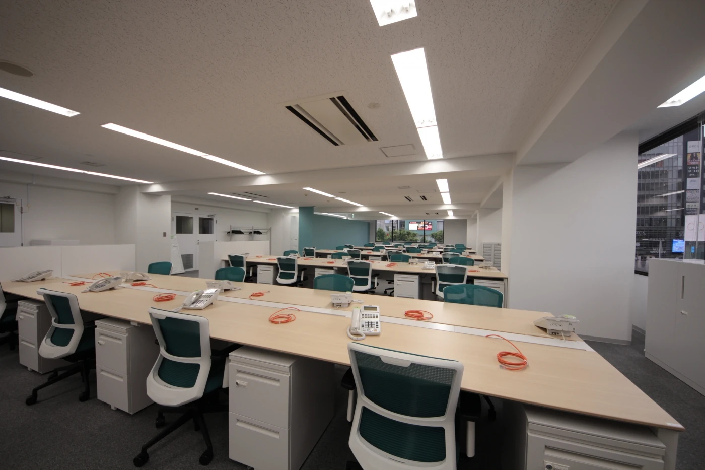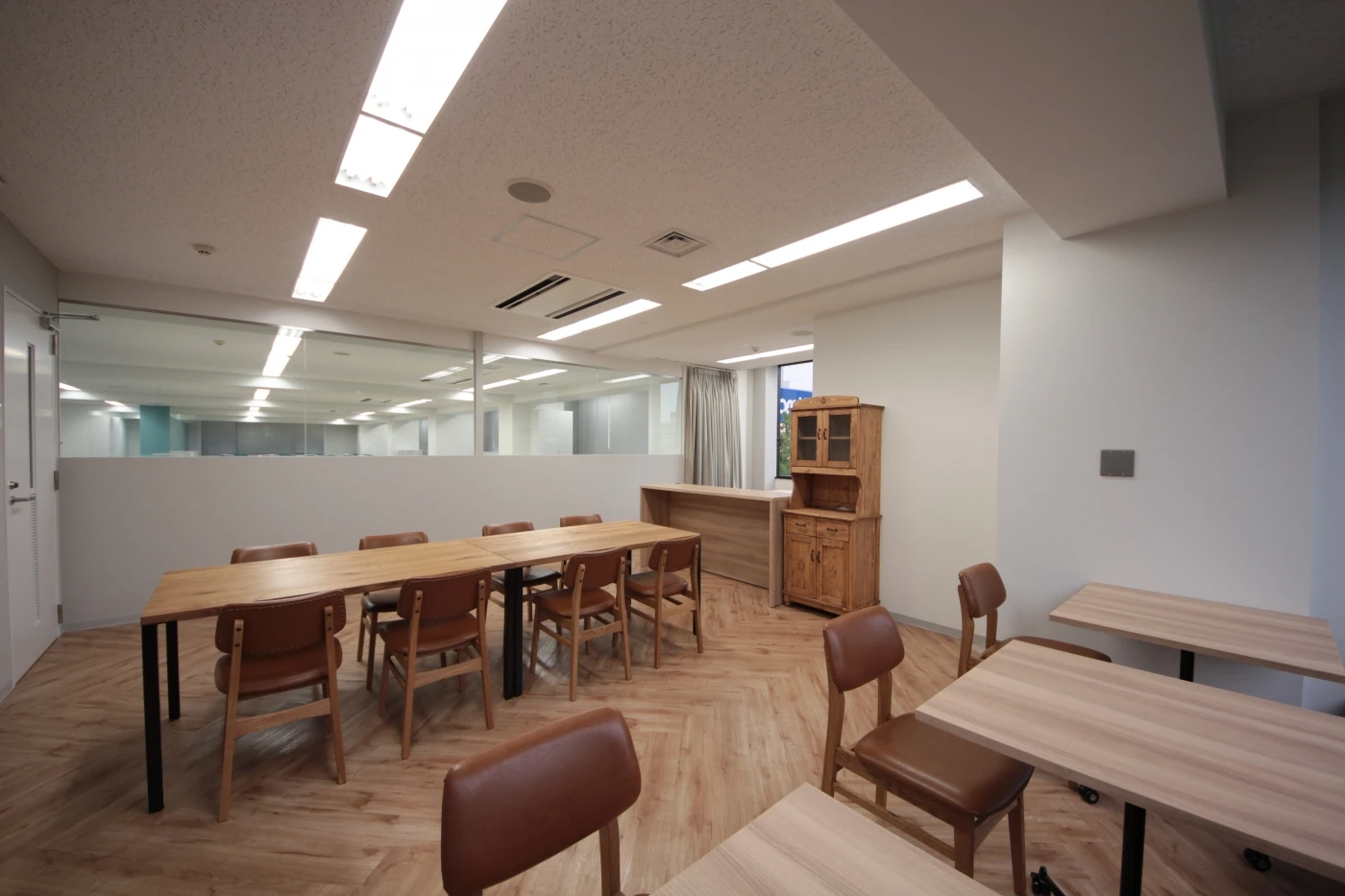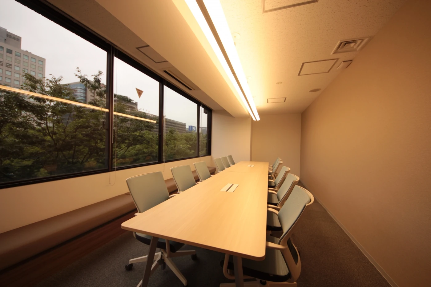 名古屋の繁華街「栄」にある久屋大通公園に隣接する好立地を生かし、公園の豊かな緑や噴水と調和するぬくもりのある空間を目指しました。オフィスは内勤の女性が多いため、色味やマテリアルの選定において、木目や北欧カラーのライトブルー・ライトグレーなどの優しい色実を積極的に使用し、一日中過ごしても気持ちがやわらぐことをできる空間作りを心がけました。特に公園の木々や噴水を臨むことができるミーティングルームやリフレッシュスペースは、スタッフの皆様にとって人気の憩いの場となっています。