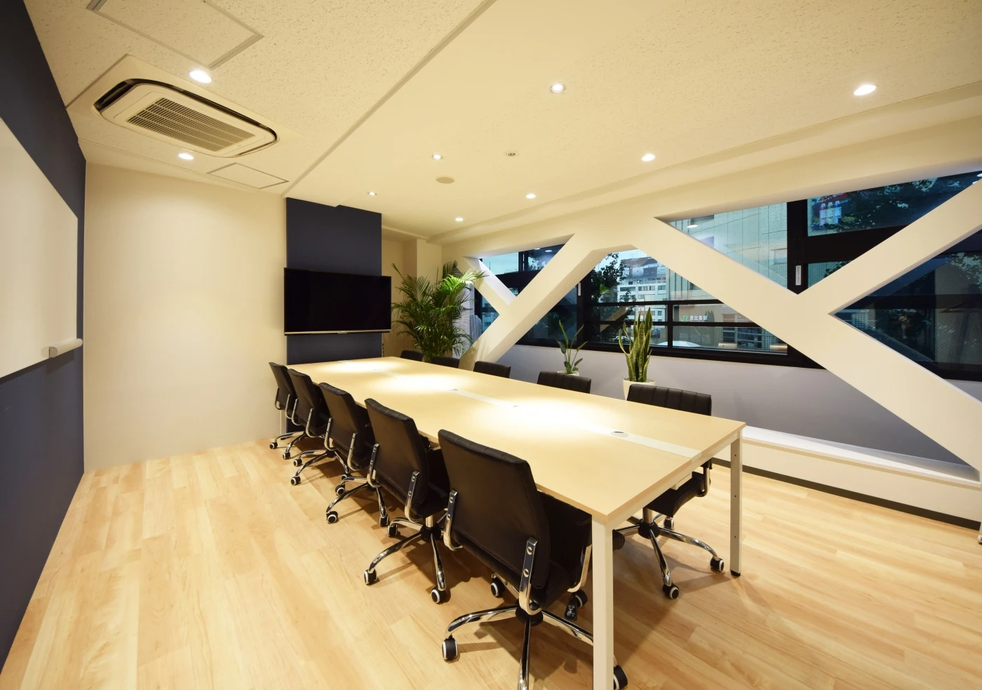 オフィスの顔となるエントランスがエレベーターホールからすぐに目に入るため、象徴的なロゴサインをガラスに取り付けています。ガラスを採用することで空間の圧迫感をやわらげ、広がりのある空間を演出しました。2つの会議室は、同じカラートーンで合わせながらもデザインに変化を与え、訪れるお客様にとって居心地の良い空間になるようにしています。ワークスペースには、カフェカウンター・社内ミーティングエリア・個室の集中ブースやファミレスソファを設置し、さまざまな働く場所をご用意しました。社員様の想いが詰まった、落ち着きのあるオフィスとなりました。
