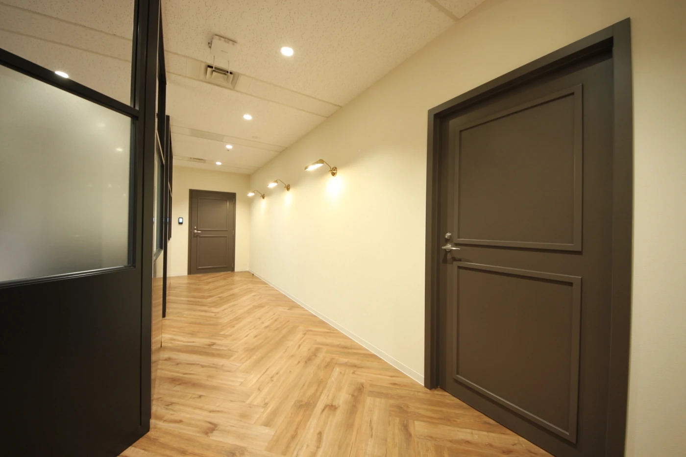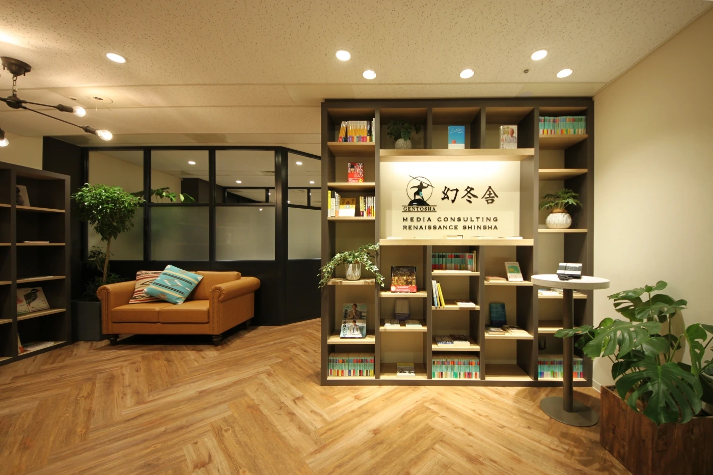 企業の想いを一冊の"本"として伝えることで、企業ブランディングをされている幻冬舎メディアコンサルティング様。そんな幻冬舎様のアイデンティティをこのご移転のタイミングで空間から演出できないかと考え、今回のオフィスをご提案させていただきました。通路にあしらったピクチャーライトやヘリンボーンの床で歴史の重みや温かさを感じさせる空間でありながらも、ブラックフレームのパーテーションやソリッドな家具で全体的に洗練されたデザインにしています。来訪されたお客様がエントランスに足を踏み入れたとき、まず第一に目に入るのが壁面いっぱいに並んだ本。自社の出版本を展示するのではなく空間の演出としてディスプレイしており、それがさらにアイデンティティを表現するデザインになっています。空間全体で幻冬舎様を表現するデザイナーズオフィスとなりました。 東京オフィスはコチラ