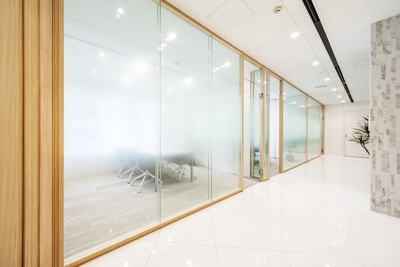 外光が差し込み透明感と清潔感の感じられるオフィス