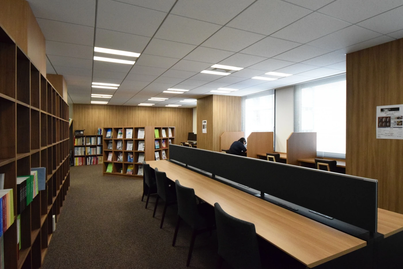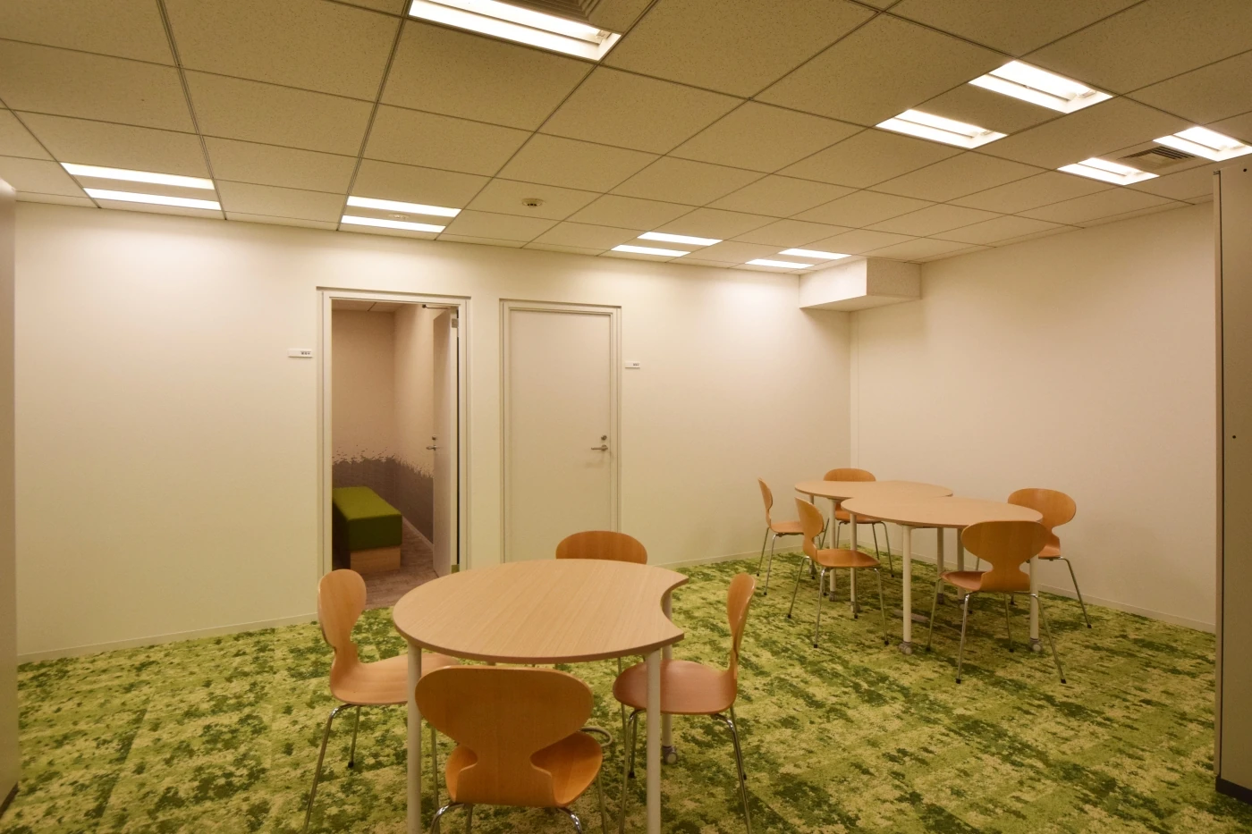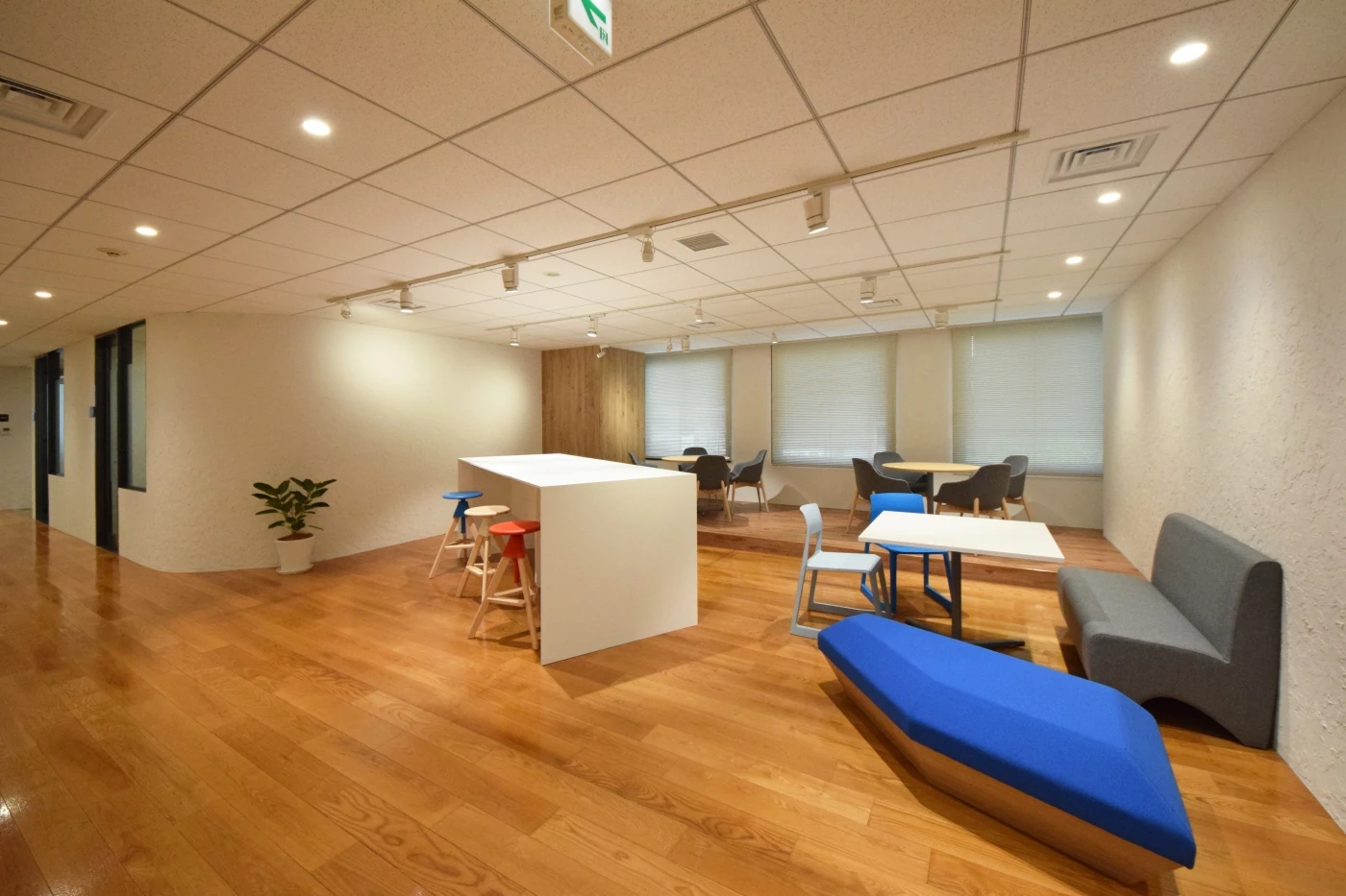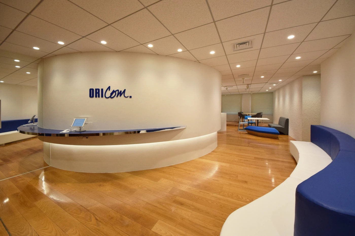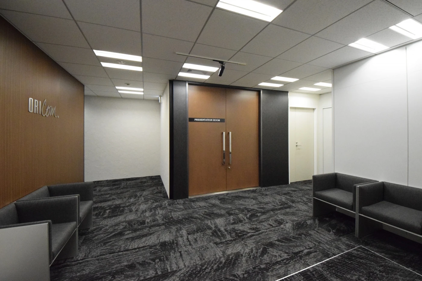 既存オフィスの改装プロジェクトをお手伝いさせていただきました。改装エリアを明確化させるためにそれぞれ、オリコムテラス・ガーデン・カフェ・パーク・図書館とネーミングし、そのテーマのもとデザインしました。「オリコム図書館」は本や資料に囲まれた集中スペース、「オリコムパーク」はみんなが自然と集まり活発にディスカッションできる打合せスペースになっています。メインエントランスは、スタッフの個性という色を表現するキャンパスの白とオリコムブルーで構成し、社内外へのブランディングを強化しています。