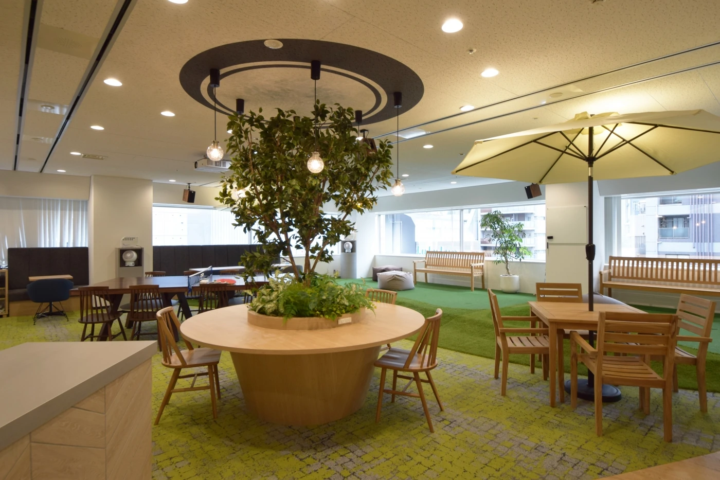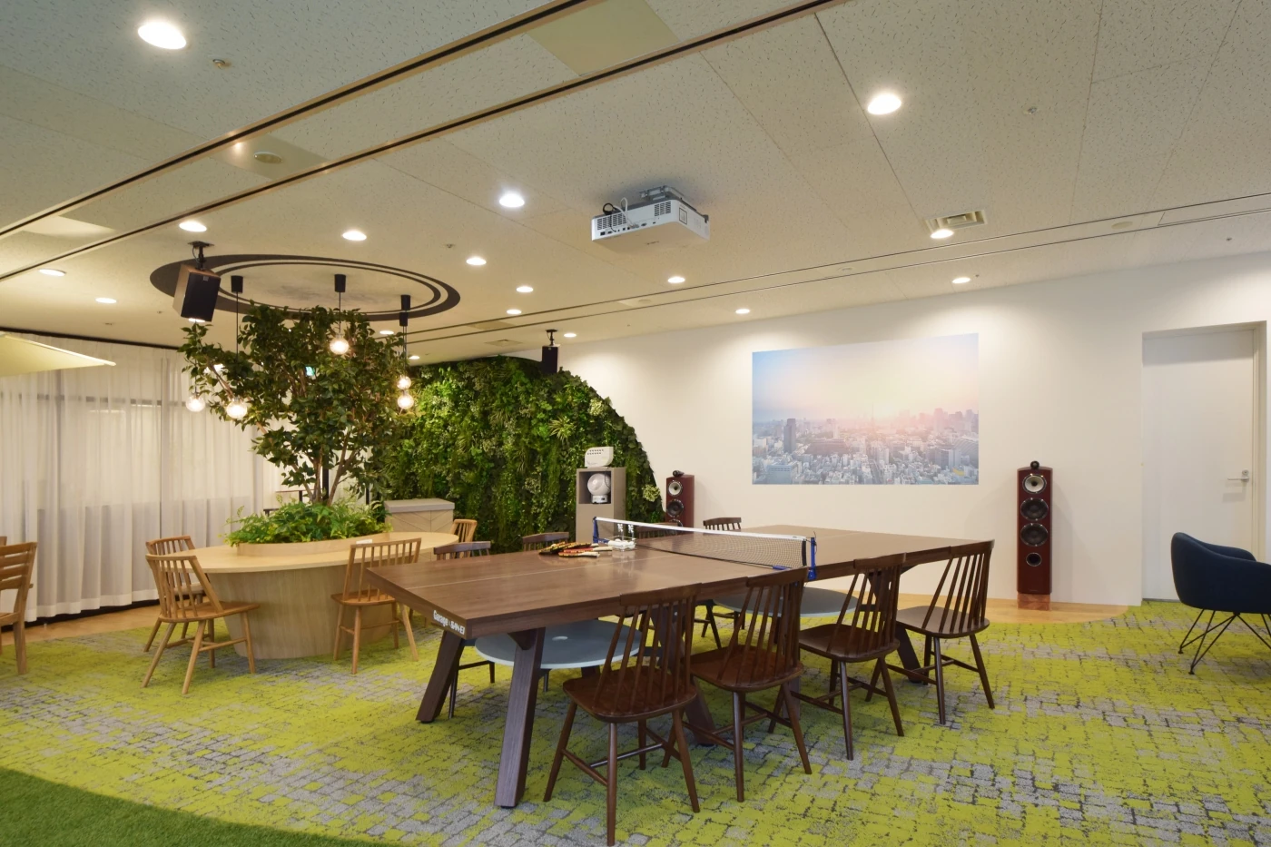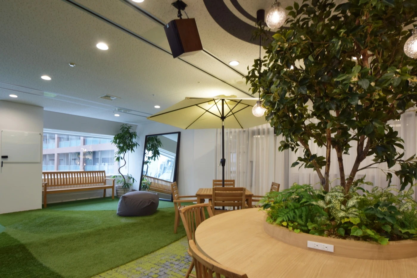 スペースの有効活用を目的に改装のご相談を頂き、全体的なレイアウトの見直しや商品PRルームのデザインをさせて頂きました。リフレッシュスペースは外にいるような気分になるよう床には人工芝、壁には壁面緑化など全体的にグリーンをたくさん施しました。セミナースペースとしてオープンに使用できる事に加え、卓球台やパタースペースなど自由にリフレッシュできる要素も取り入れました。PRルームは白を基調に明るくシンプルな空間に仕上げ今後のイベントにも対応できるようにするなど、デザイン面だけでなく運用面でも有効に使えるオフィスとなりました。