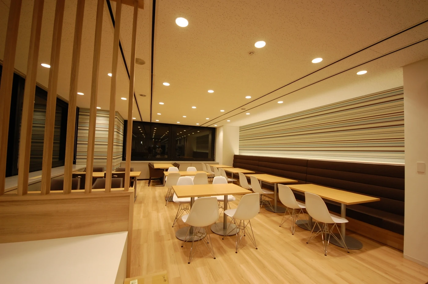 白タイルと木目で構成された渋谷教室は、少し特別な環境を感じていただけるようなデザインに。コミュニケーションを取りながらも空間を区切ることができる縦格子や大きな窓を活かした配置に加え、ソファ背面の光の演出によって、限られたスペースながらも奥行きと広がりを感じることができる空間になっております。