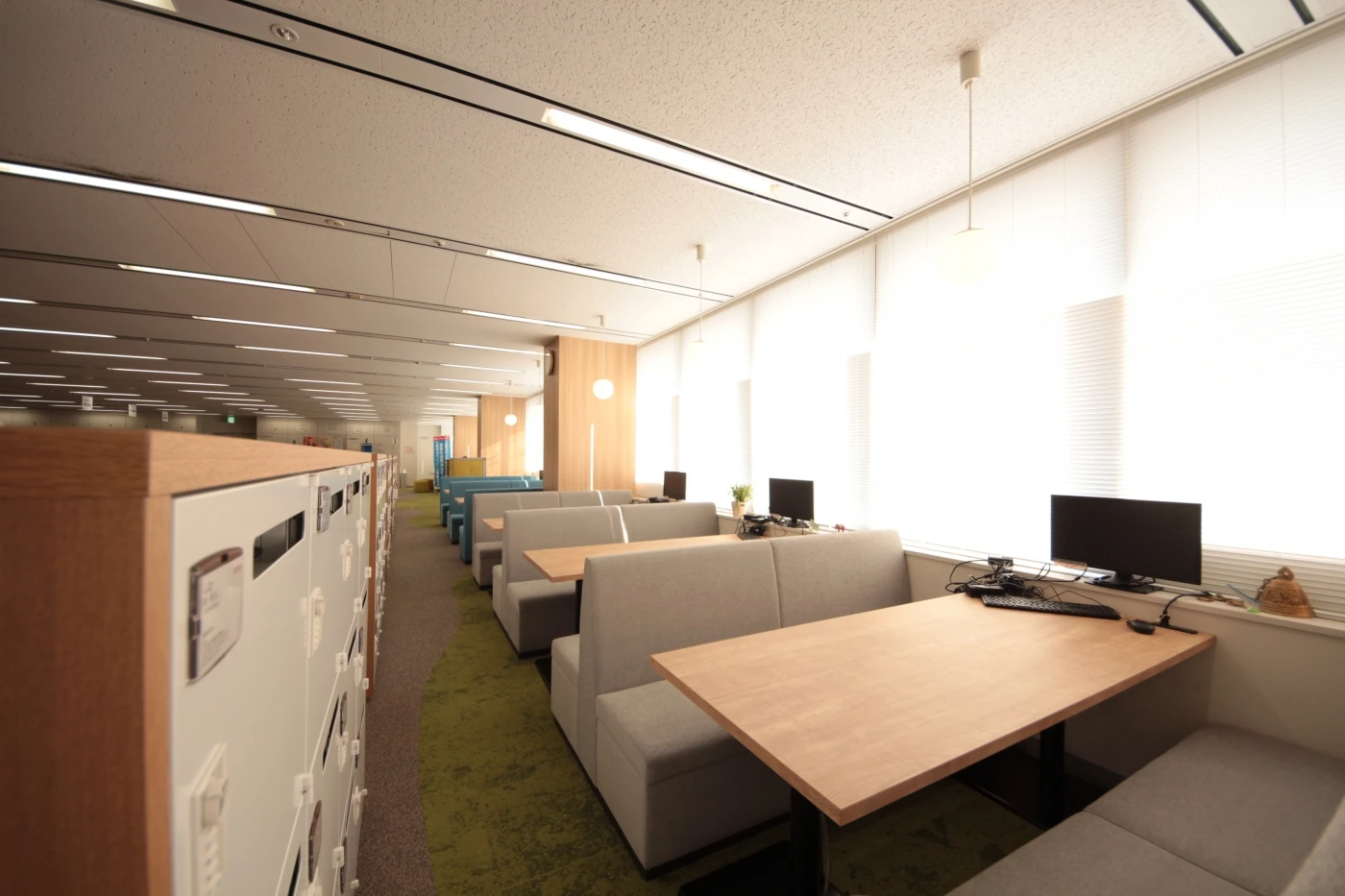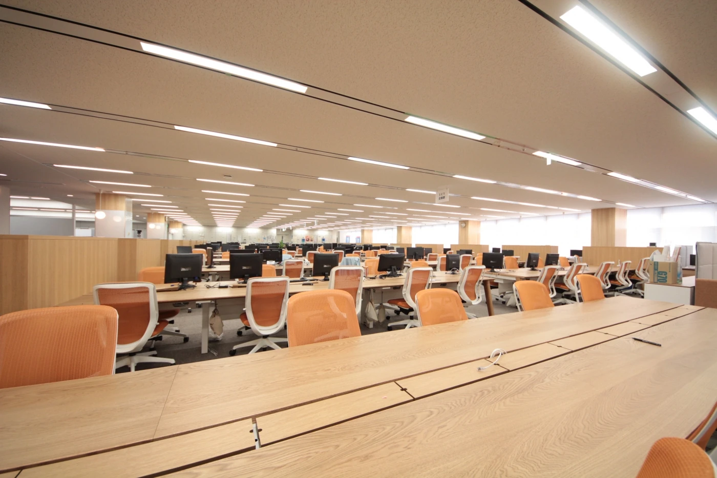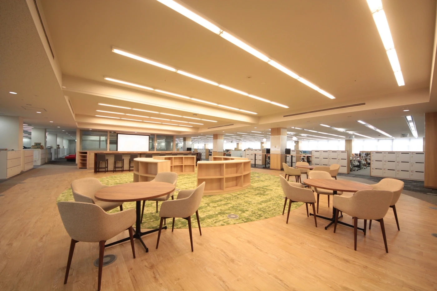 『Crafting the Core』をスローガンに全世界に顧客を持ち、圧倒的な開発力と人材力で新しい未来を切り開くデンソー様の本社開発フロアの改装プロジェクト。ワンフロアに400名、20を超える開発プロジェクトが共存するワークスペースに、相互の智の共有とコミュニケーションの活性化を目指しデザインを進めました。これまで執務と物置になっていた窓側のスペースは部署を横断して続くオープンミーティングエリアにすることで連帯感と解放感をもたらし、フロア中央の上下階を繋ぐ階段付近には気軽に座れるベンチスペースを配することで、他フロアからの来訪者と気軽に情報交換ができる環境を整えました。執務スペース全体をコミュニケーションエリアで囲む設計としたことで、開発者たちが自席を離れ、プロジェクトを越えてコミュニケーションする姿が多く見られるようになりました。