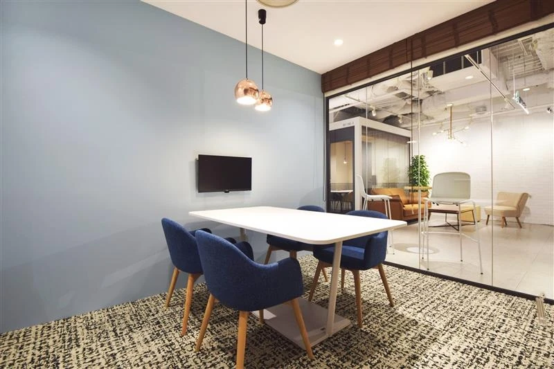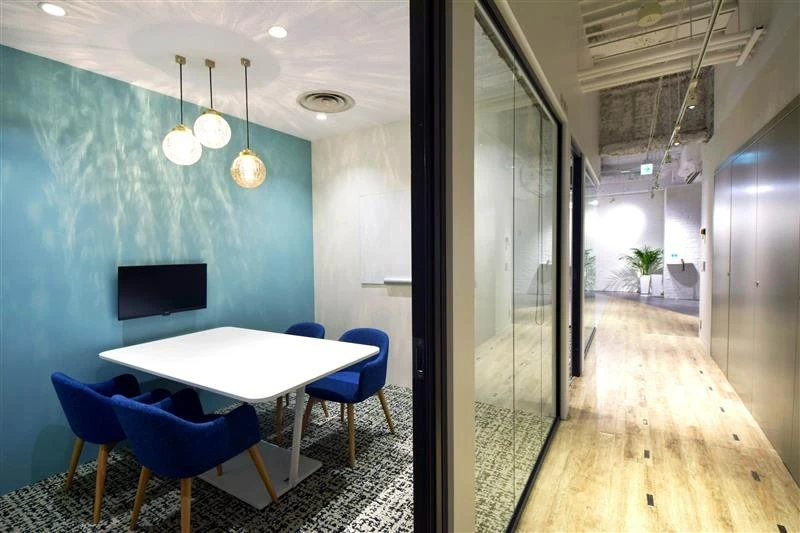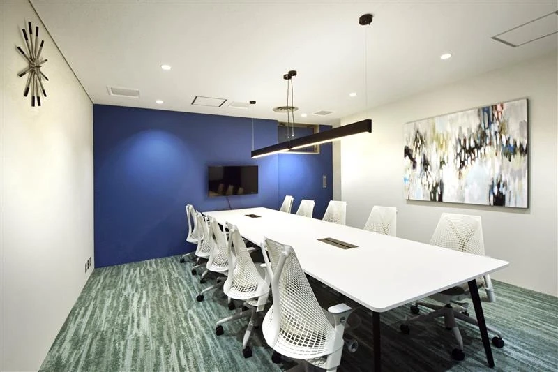 社名を変更されたタイミングでのオフィス移転をお手伝いしました。コーポレートカラーであるティール色のグラデーションを各会議室の壁や集中スペースに取り入れることで、シンプルな空間にアクセントを出しました。ワークスペース内にはゆったり座れるファミレス席や集中スペースを設置して癒しの空間にし、様々なコミュニケーションスペースを設けて社内コミュニケーションを促すなどの工夫をしています。