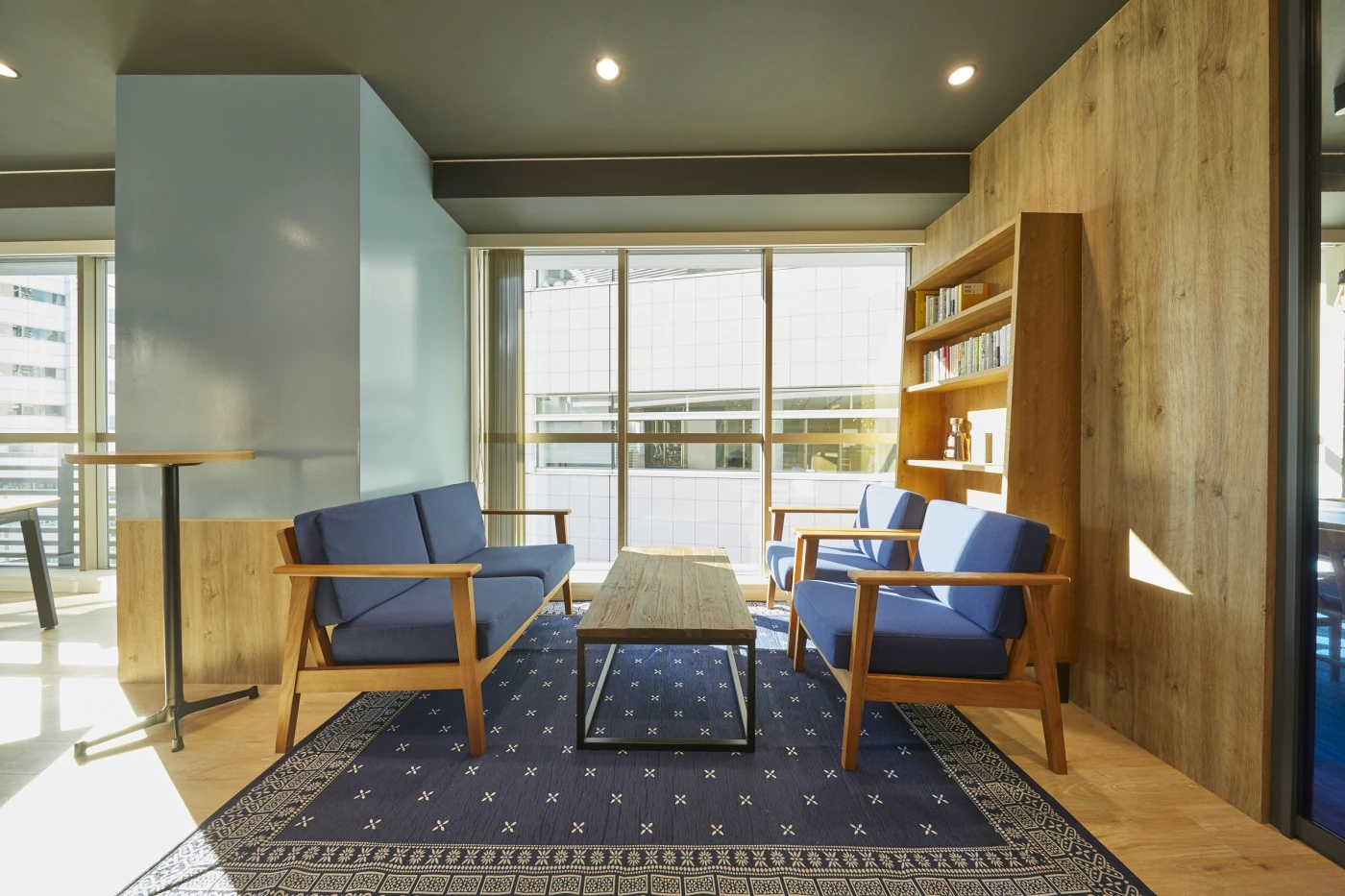 本格的な内装デザインを取り入れた初めてのオフィス移転をお手伝いさせて頂きました。「海を感じられる南国テイスト」というデザインのご要望を頂き、全体を設計しました。
