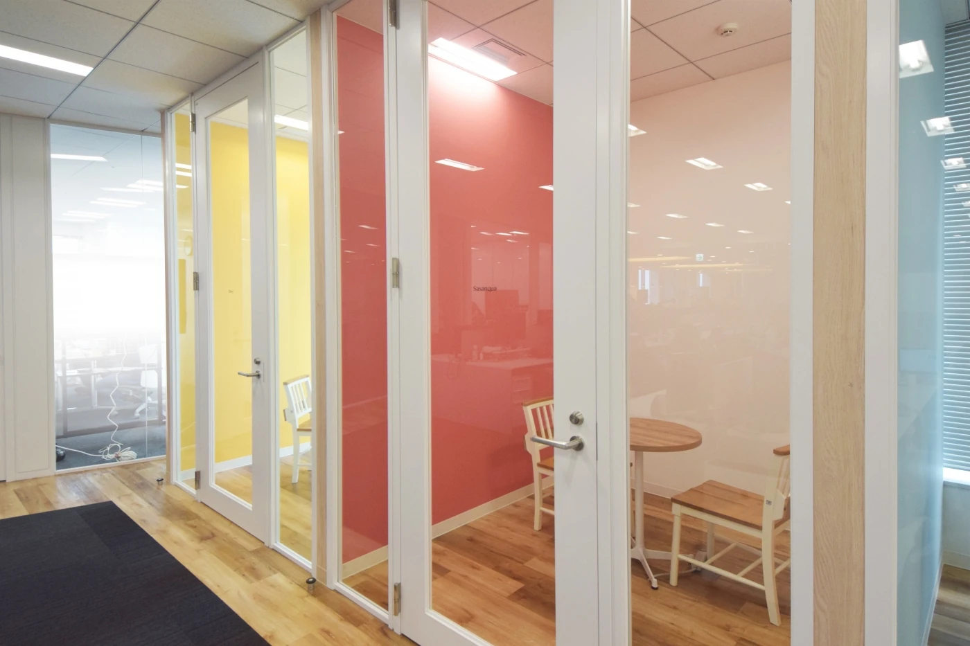 社内外の方にご利用いただけるコラボレーションスペース「parQ(パーク)」は、セミナーやミートアップといったイベント実施はもちろん、コワーキングができる場所にもなっており、多くの方が思い思いの使い方をしていらっしゃいます。1on1ミーティングを頻繁に行い、コミュニケーションを密に取る文化が根付いているので、1on1ミーティング専用部屋も設けました。1on1ミーティングに関連するポジティブな言葉を抽出し、それらを花言葉としてもつ「花の名前」が部屋に付けられています。壁はそれぞれの花のイメージに合わせた色にしました。部屋やエリアの名前を考えたり、素材や家具などを選んだり。賑やかな打ち合わせを重ねながら、プロジェクトメンバーの皆さまと楽しく進めることができました。