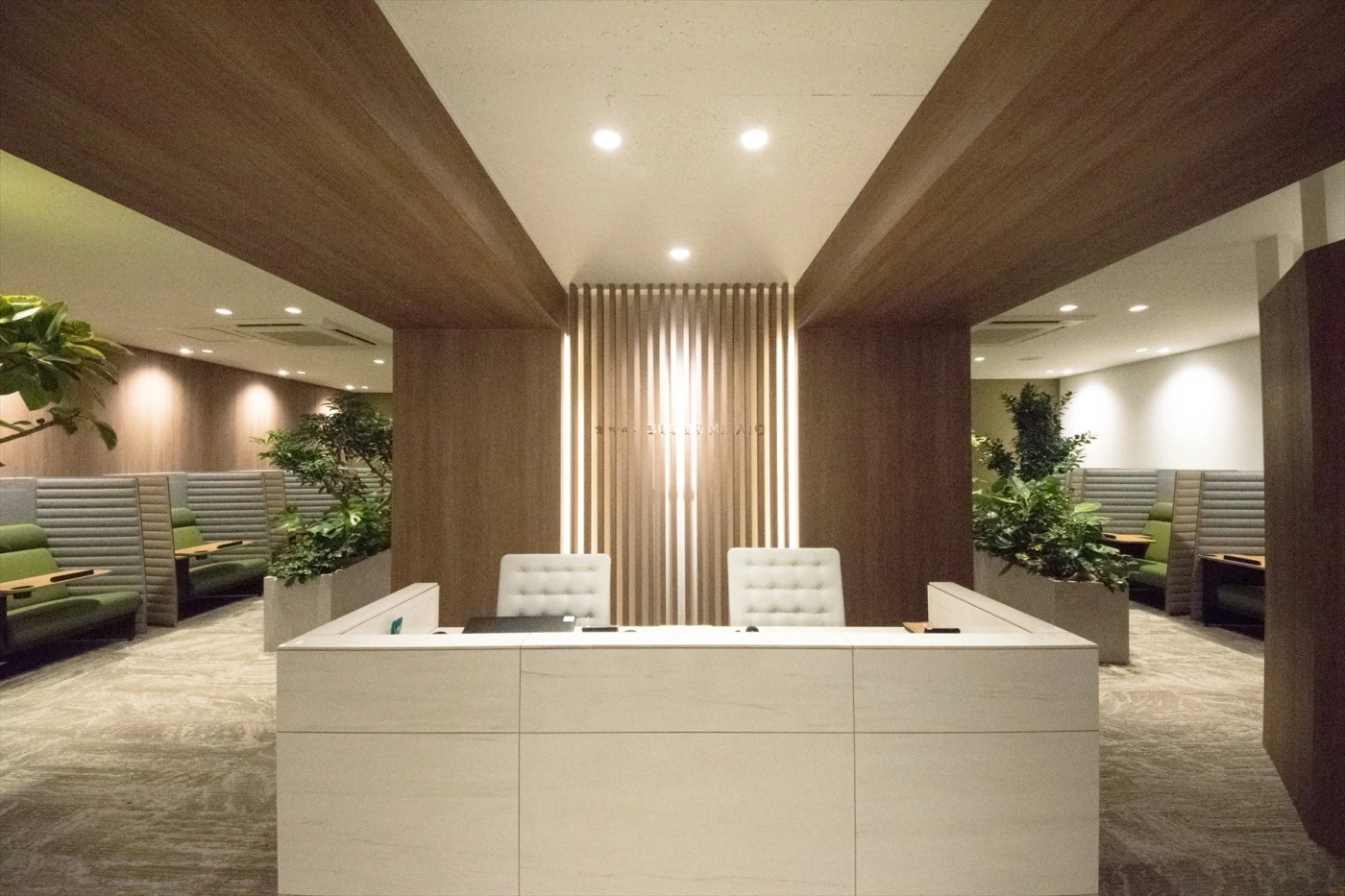 事業変革に合わせてのオフィス移転。来客型の弁護士事務所になるにあたって、お客様の気持ちに配慮したデザインを取り入れました。事業柄不安や心配ごとを抱えて来所される方が多いため、温かみや安心感を与える色使いやファブリックを選定しております。また、働く環境に関しても、無機質だった執務空間を一新し、温かみのある有機的なデザインとしました。オフィス空間の随所に点在する植物も全て本物で拘り、そこに居る「人」にとって心地よい空間が広がります。