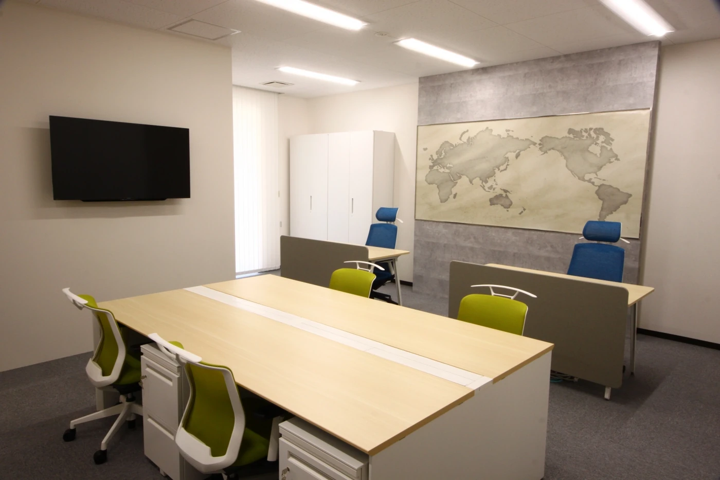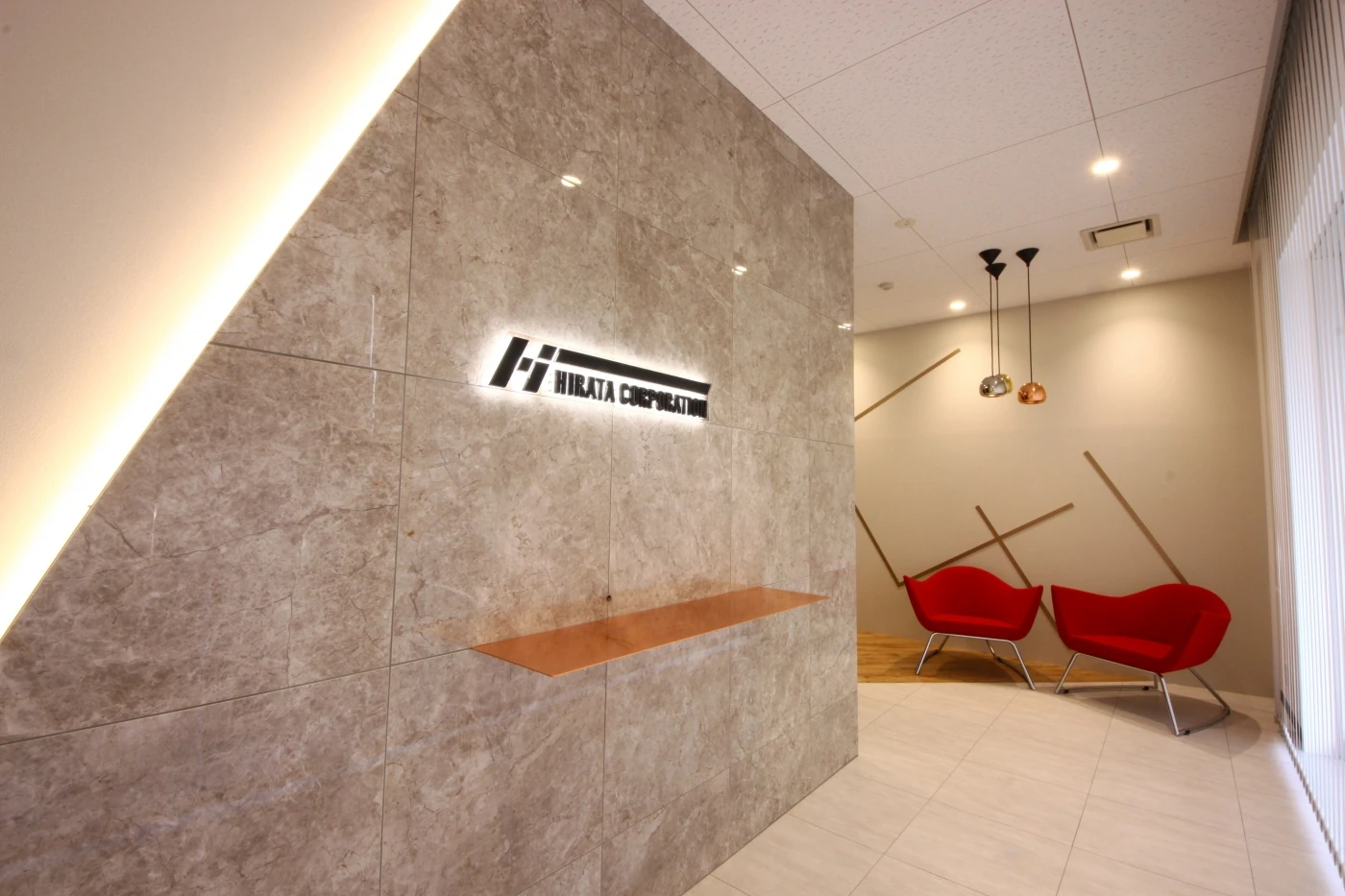 企業ブランディングを新たに確立することを目的に開設する新しいオフィス。「金属リサイクルがエコロジー社会をつくるきっかけをつくる会社」という、リサイクル業界におけるこれまでの概念を変えるコンセプトでオフィス創りを始めました。レイアウトは、受付・会議室・ワークスペースというシンプルな構成ながらそれぞれの空間に語りたくなるこだわりポイントを盛り込みました。お客様を出迎えるエントランスには、ブランディングに即した新しいサインロゴを、より魅力的に見えるよう発光させました。壁面には色味・模様にこだわったタイルを敷き詰め、高級感を出しています。会議室入口には、照明スイッチと連動した発光する在空表示を採用し、使用状況が外から分かる工夫を追加。ワークスペースにはかねてからご要望のあったホワイトボード仕様のオリジナル世界地図を掲げ、働く皆様の意識向上に役立てています。全体を通して、ヒラタコーポレーション様の「こうしたい!」がギュッと詰まったデザイナーズオフィスとなりました。