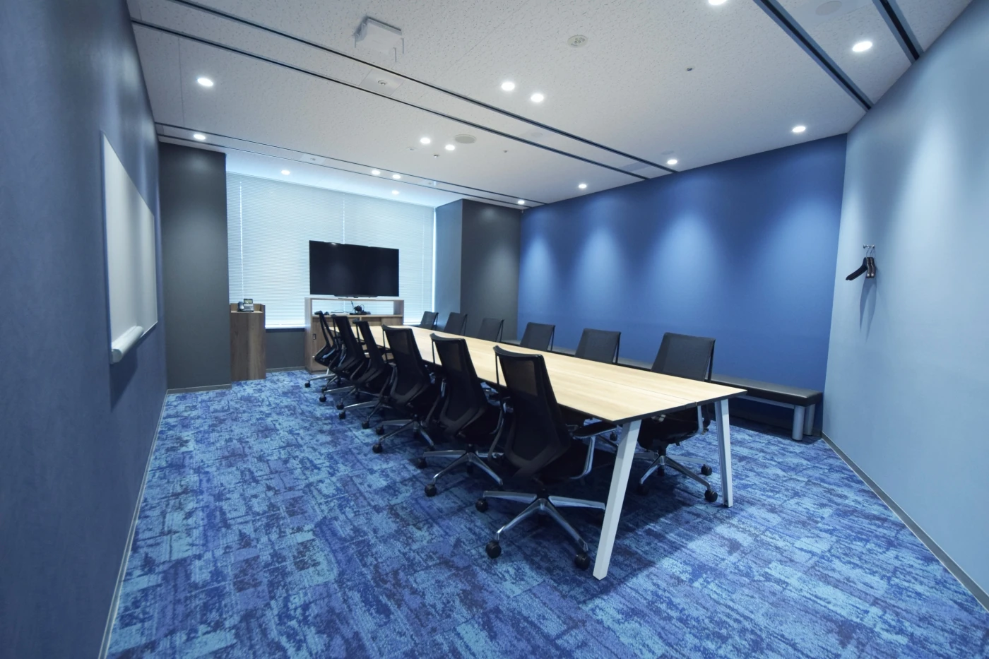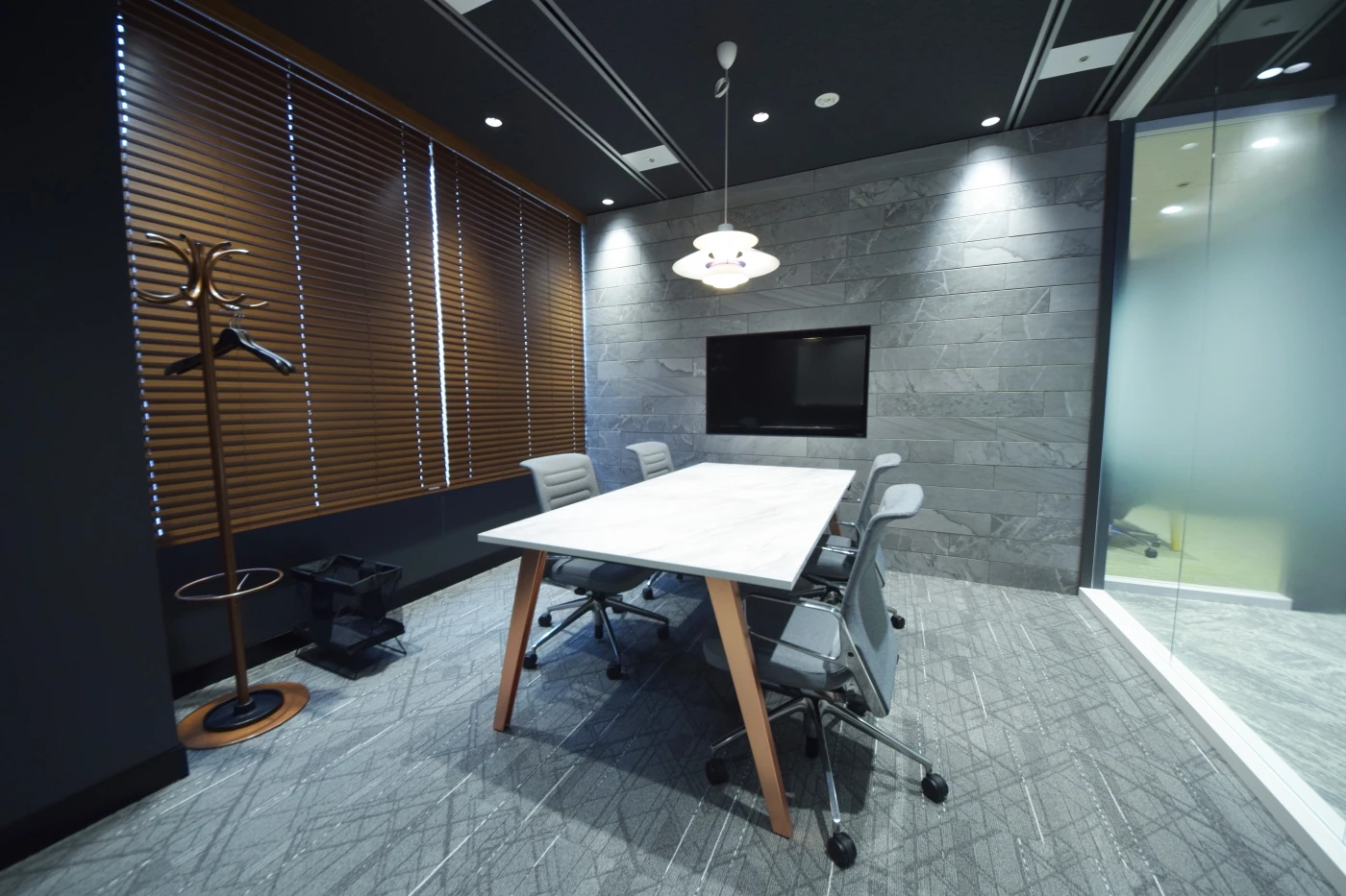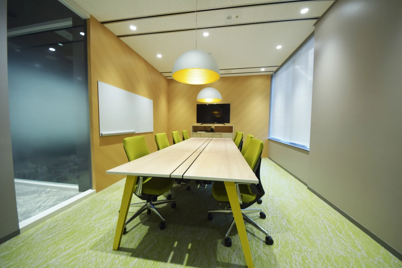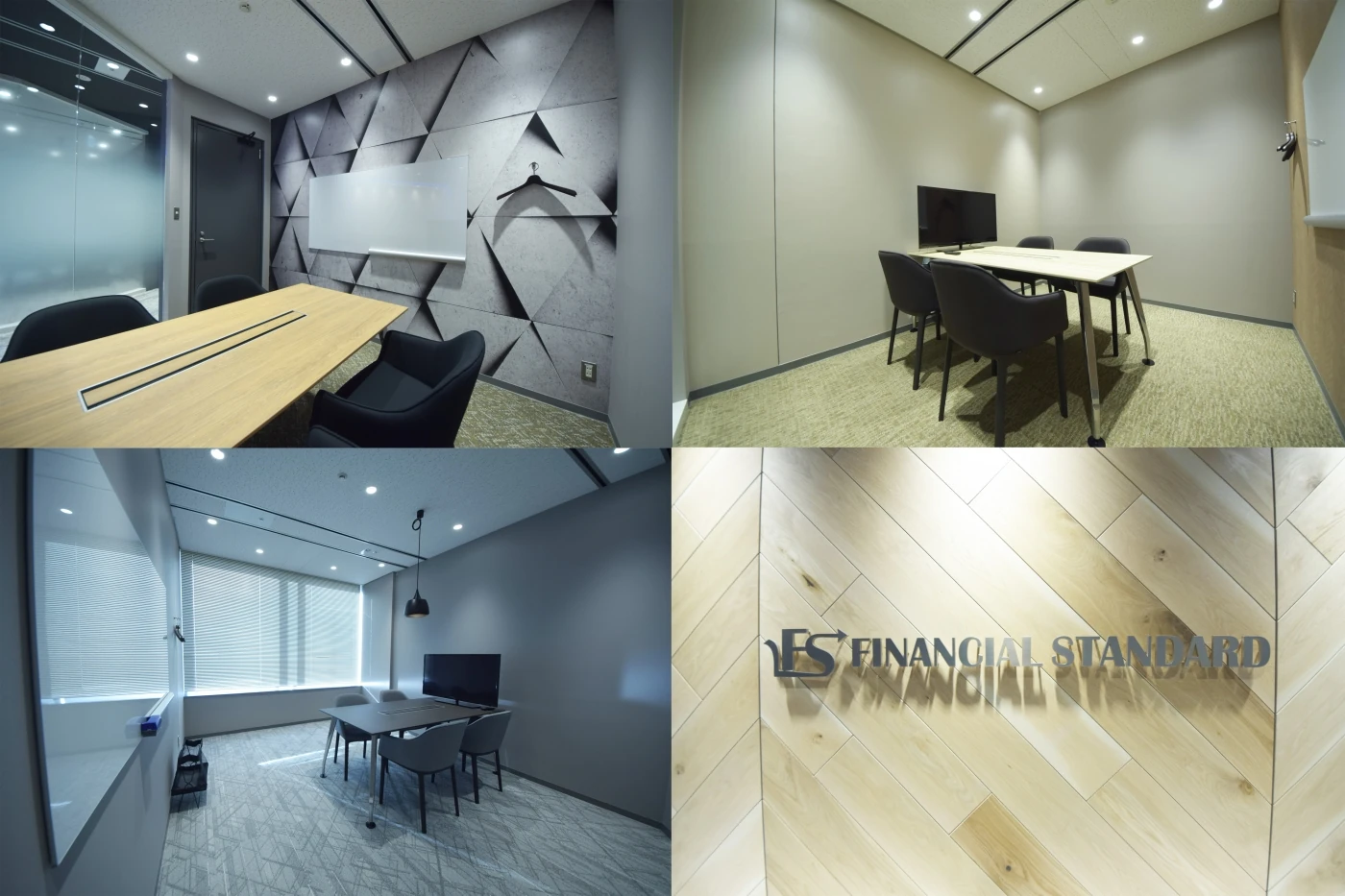 6部屋ある会議室もそれぞれデザインを変えており、タイル、グラフィッククロス、ガラス、カーペットなど表装面だけでなく、テーブルの天板・脚、チェアの張地といった細部までこだわり抜いてデザインしました。東京本社とはディテールは異なりながらも統一感を出し、ともにファイナンシャルスタンダード様らしさを感じられる空間に仕上げることができました。